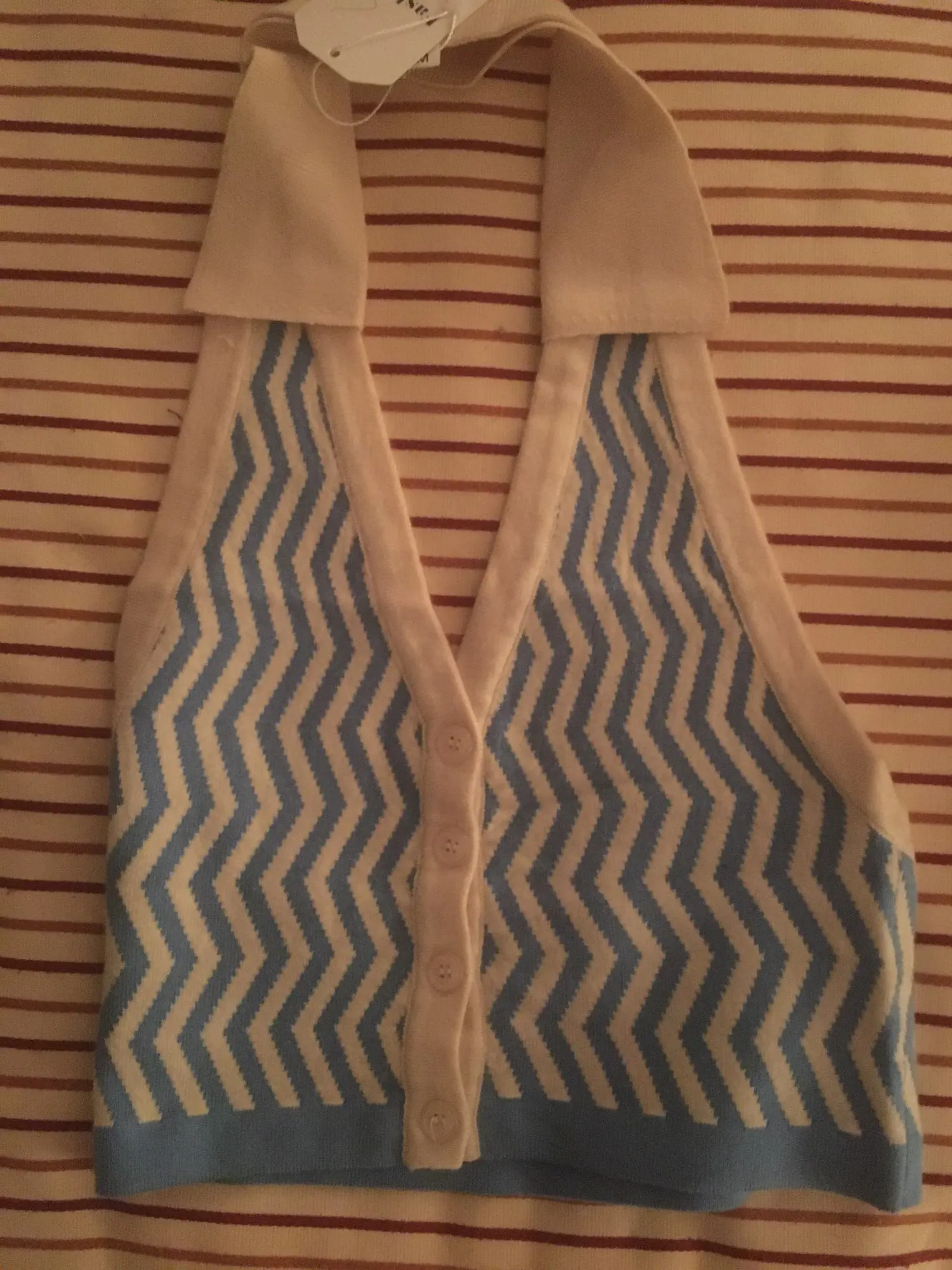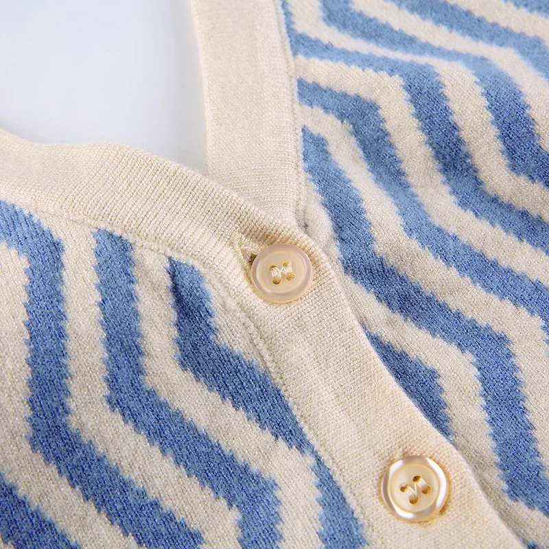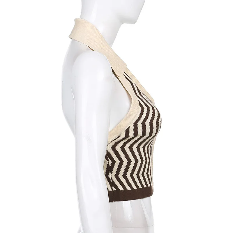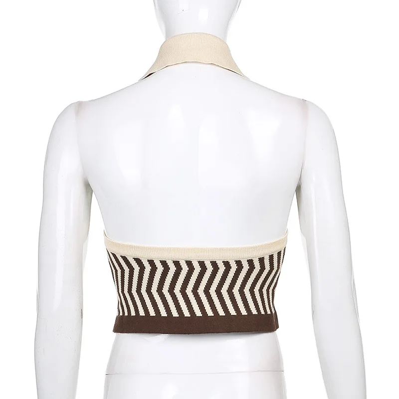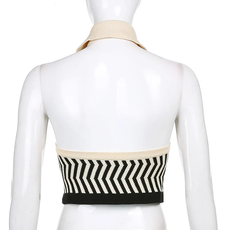 ALLNeon 90-х винтажные полосатые трикотажные укороченные топы с лямкой на шее E-girl эстетичные однобортные жилеты без рукавов модные синие Топы