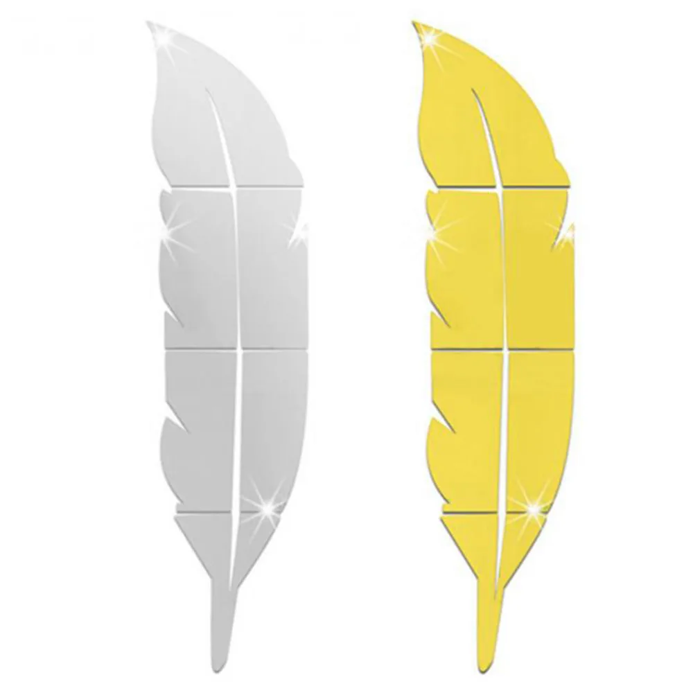 DIY форма пера 3D Зеркальная Наклейка на стену домашнее искусство д...