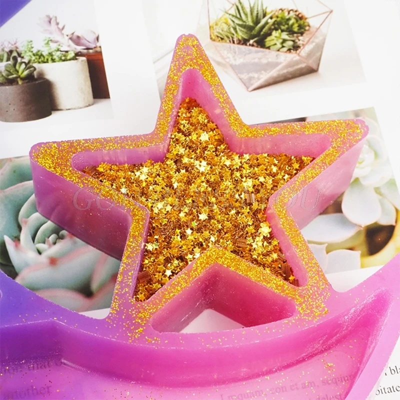 Большой поднос в виде полумесяца, форма из смолы, полка в виде Луны и звезды, прозрачный поднос для демонстрации, пластина для ювелирных изделий, формы для литья из смолы, инструменты для рукоделия, Прямая поставка
