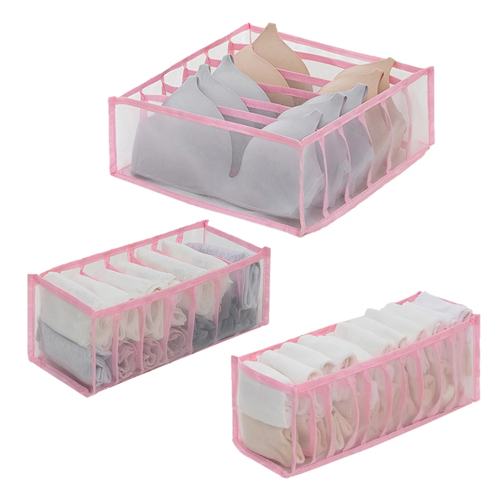3 шт., нижнее белье, бюстгальтер, носки, коробка для хранения, складной ящик типа, галстук, трусики, чехол, шкаф, ящик, ОрганайзерХарактеристика:Можно сложить, когда не используется, экономя пространство.Изготовлен из нейлоновой сетки, без запаха, моющийся и прочный.Подходит для шкафа, шкафа или ящика.Сортируйте свое нижнее белье, бюстгальтеры, носки, галстуки и т. д.Спецификация:Цвет: розовыйСтиль:Нижнее белье 6 ячеек: 32*32*12 см/12,6*12,6*4,72"Нижнее белье 7 сетка: 32*12*12 см/12,6*4,72*4,72"Носки 11 сетка: 32*12*12 см/12,6*4,72*4,72"Материал: нейлонПримечание:В связи с различиями мониторов и эффектами освещения реальный цвет товара может немного отличаться от цвета на фотографиях. Спасибо!Возможны отклонения в 1-3 мм вследствие измерений вручную.