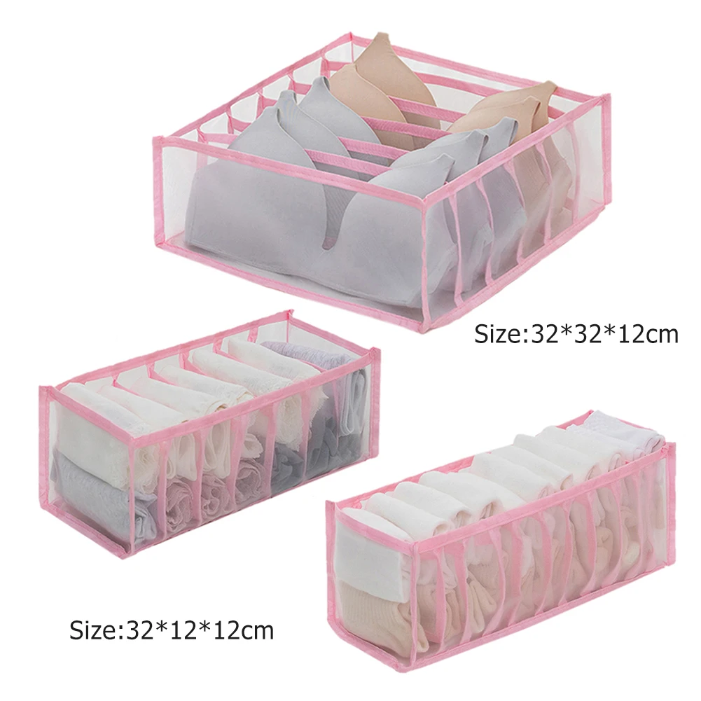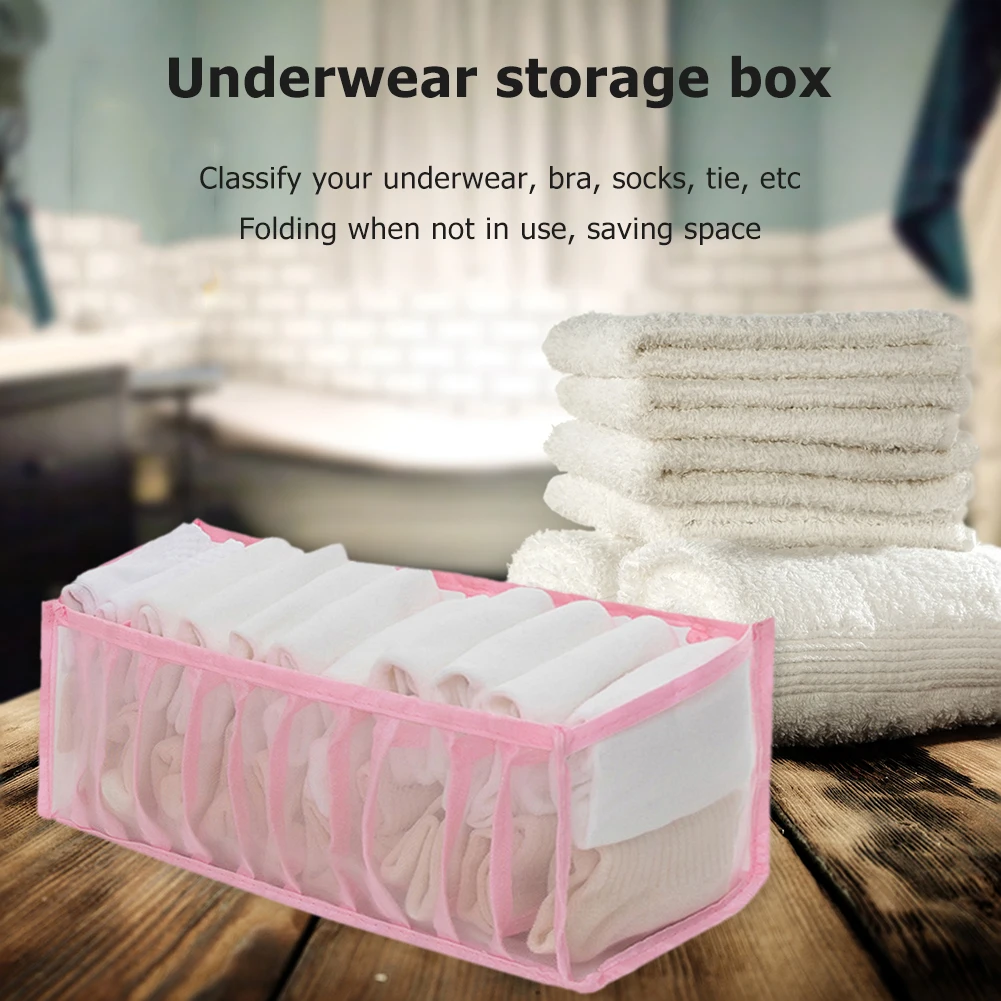 Общежития органайзер для Носки дома разделены Нижнее белье коробка для хранения 7 сетки бюстгальтер Органайзер складной органайзер