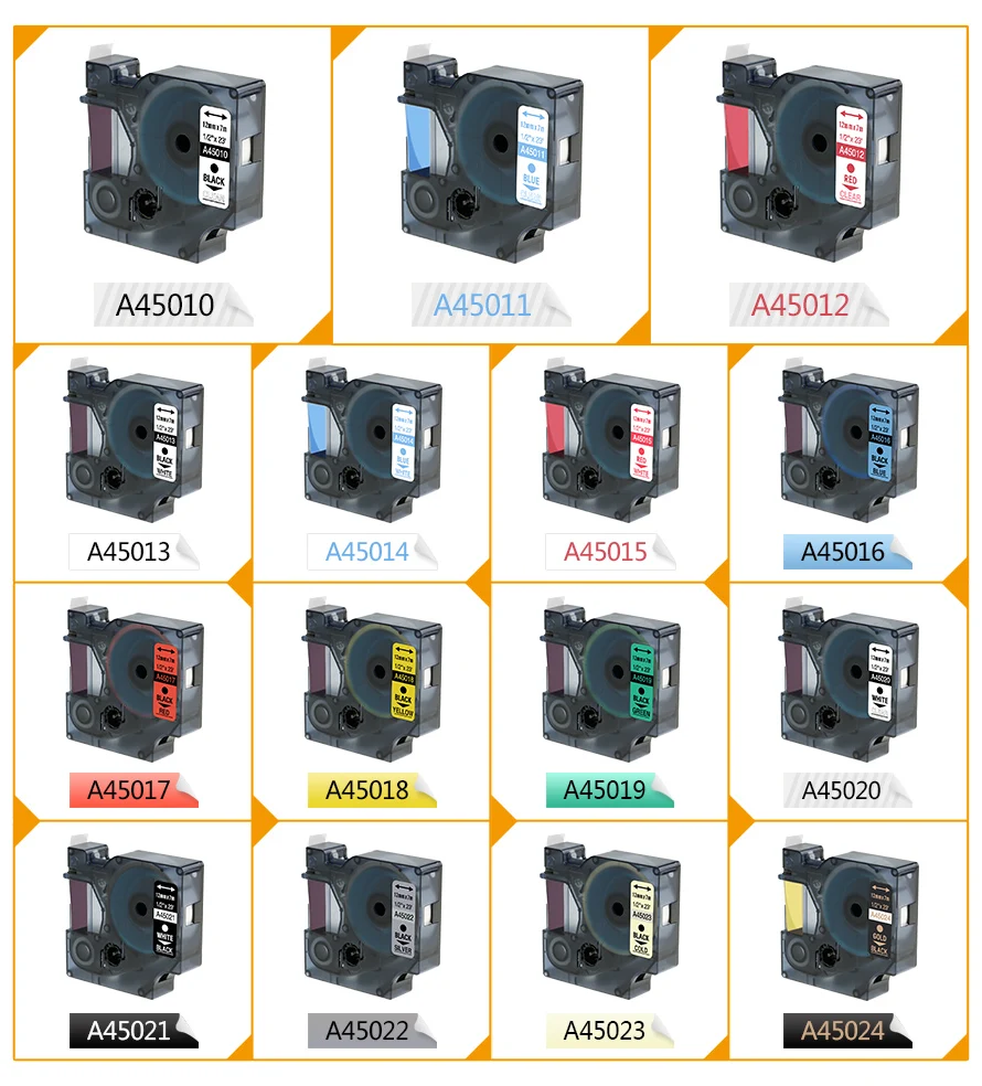 Лента для этикеток, многоцветная, 45013, 40913, 43613, 45018, 40918, 45016, совместимая с Dymo D1, для Dymo LM160, LM280, 53713, 45010