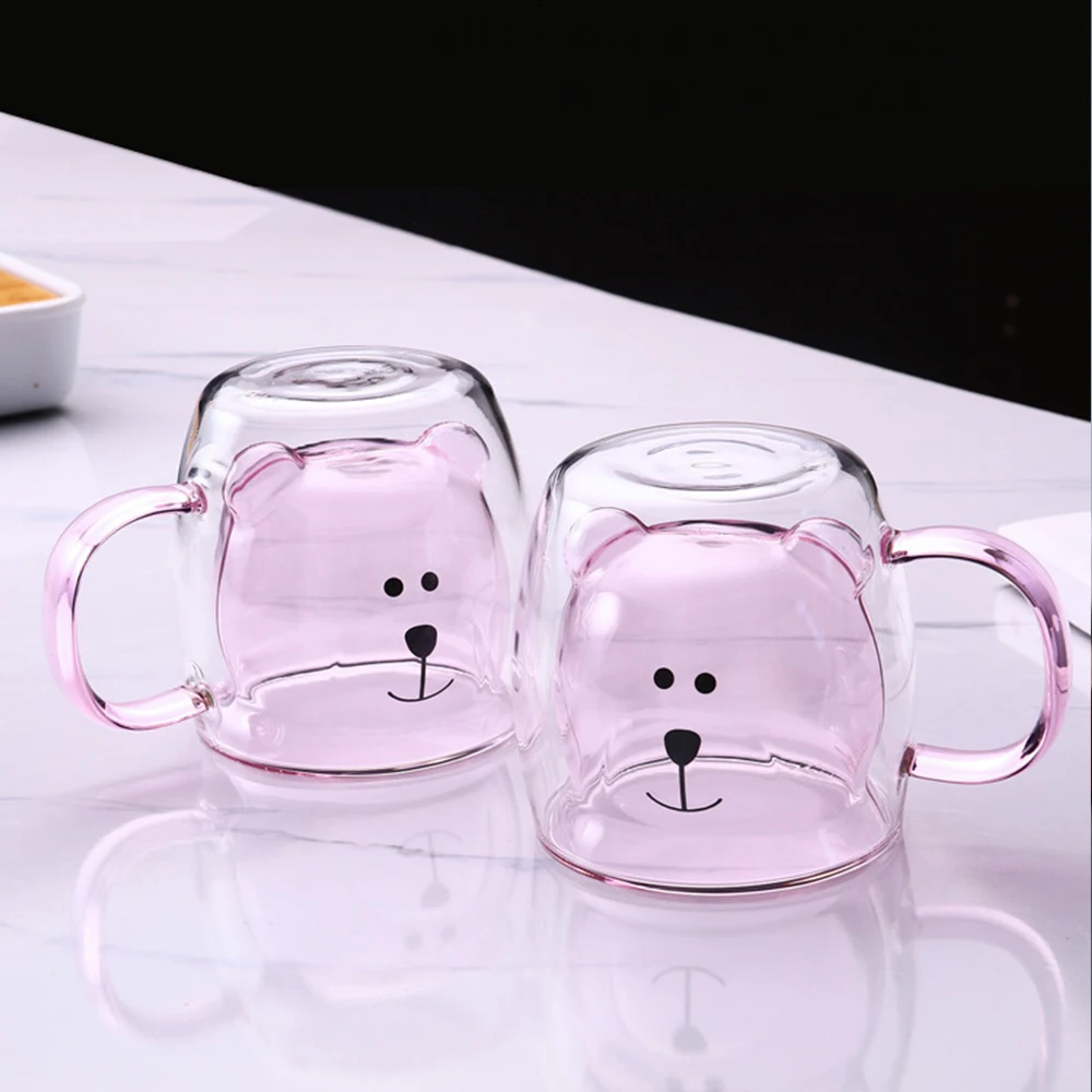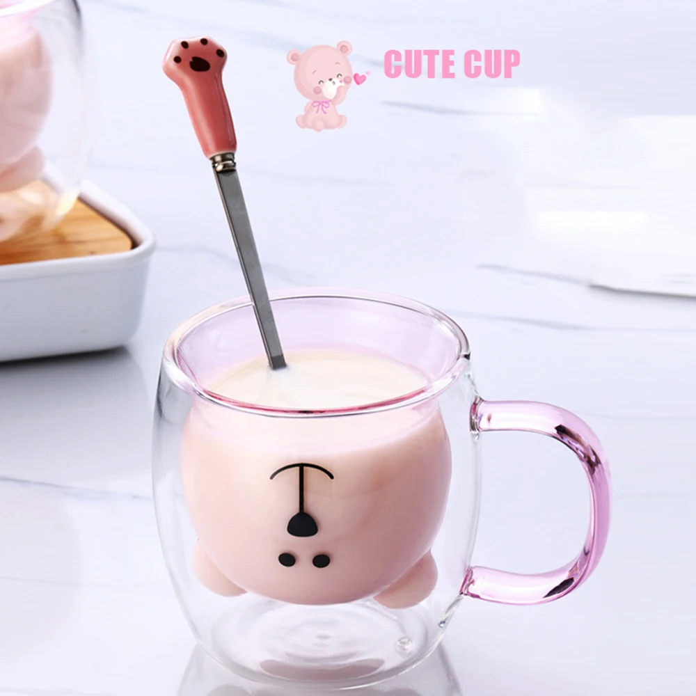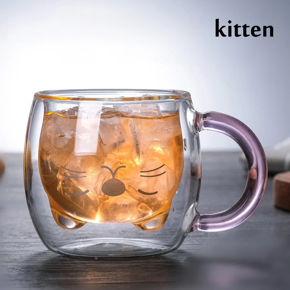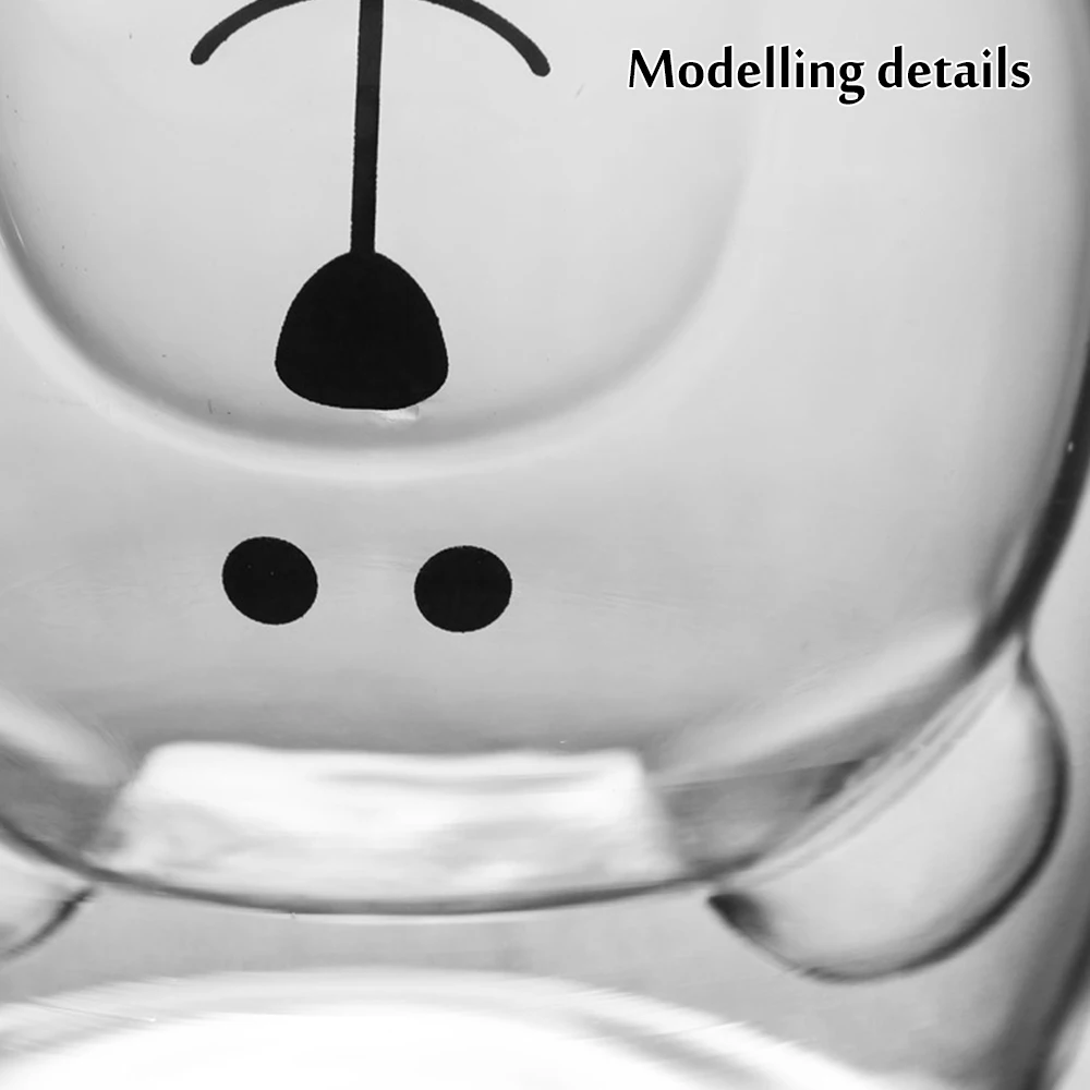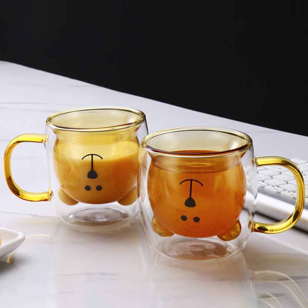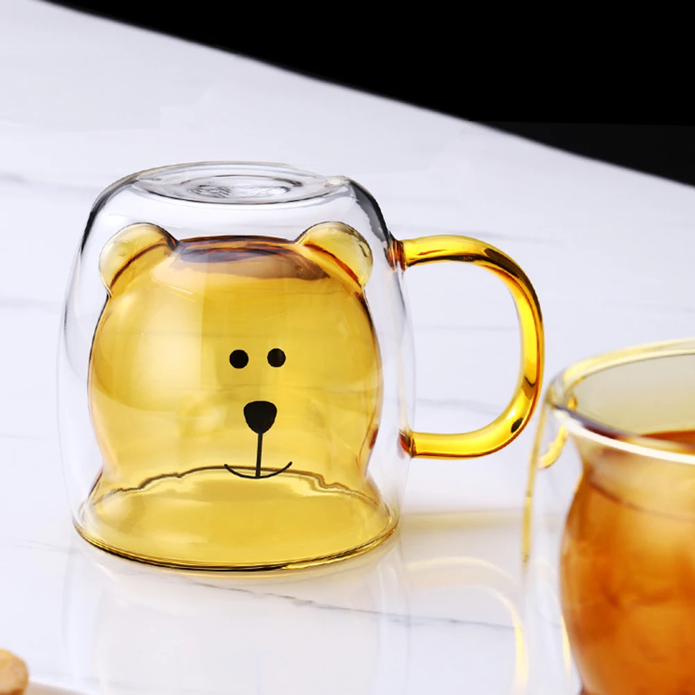 Кружка стеклянная, термостойкая, 2-уровневая, с ручкой, с изображением медведя, кота