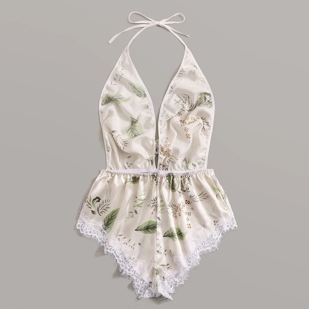 Женское кружевное нижнее белье с принтом и пятнистым бантом, боди, пижама с открытой спиной, Шелковый комбинезон