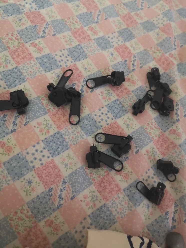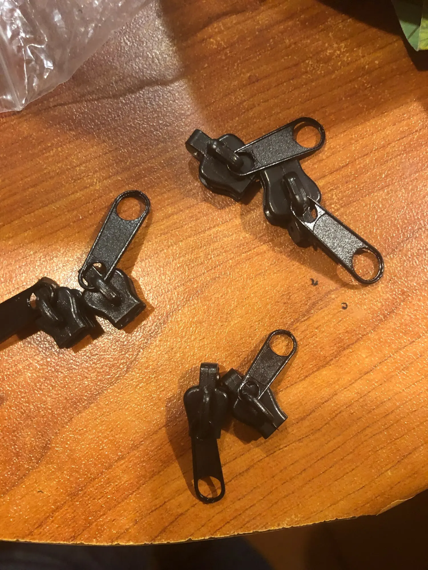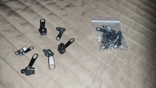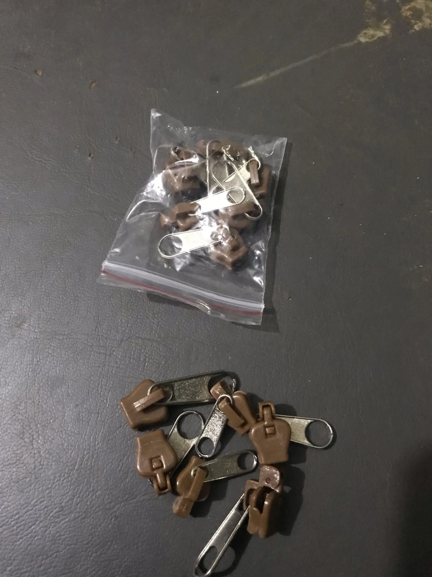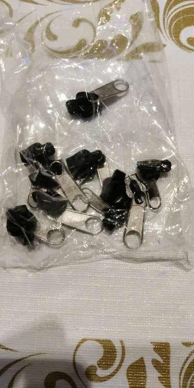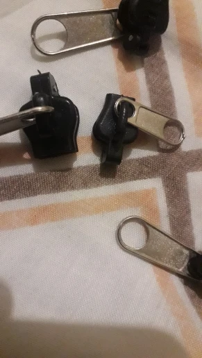 Товар сделан из пластика. В пакетике 3, как я понял, разных размера. Починил куртку, где после покупки быстро сломалась молния. Я был очень доволен и стал ремонтировать 2-ю свою куртку. И тут обнаружились минусы - плохое крепление скобы за которую тянешь и слобоватая защёлка при закрывании. Пришлось брать термоклей и паяльный фен и усиливать слабые места. Тогда на 2-й куртке заработало. Ремонт 1-й куртки полностью окупил эту покупку. Поэтому в целом доволен, но 5 звёзд поставит не могу. Требуется чуть улучшить данный товар...