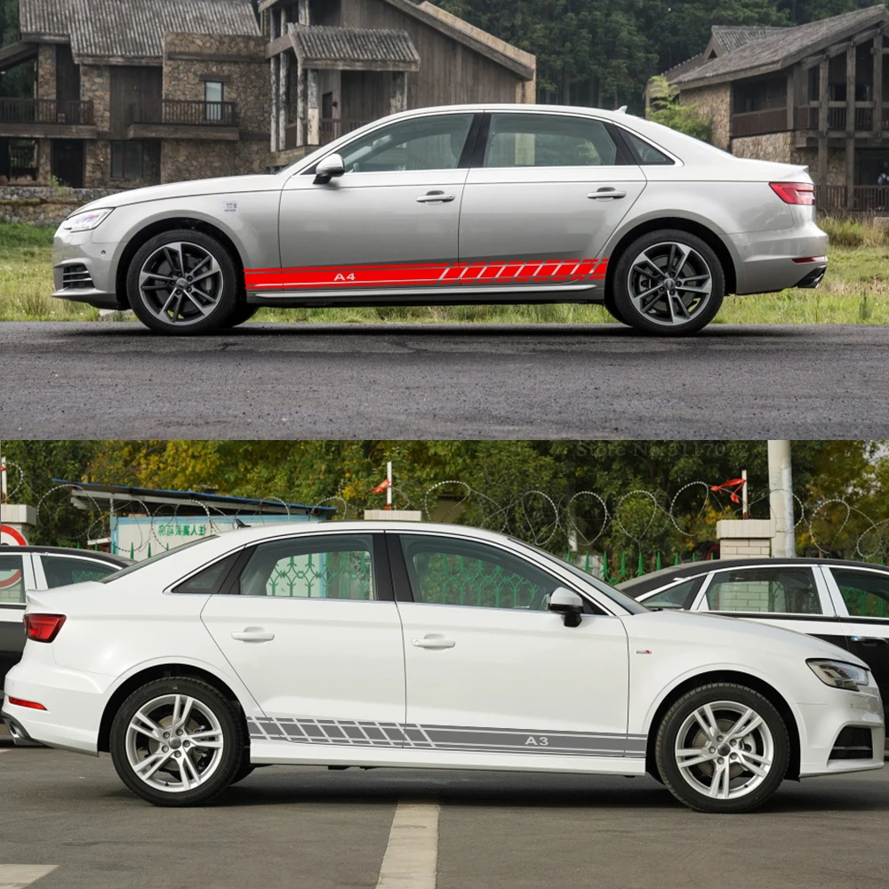 2 шт. наклейки для автомобильной двери, боковой юбки для Audi A4 B5 B6 B7 B8 A3 8P 8V 8L A5 A6 C6 C5 C7 A1 A7 A8 Q2 Q3 Q5 Q7 TT RS3 RS4 аксессуары
