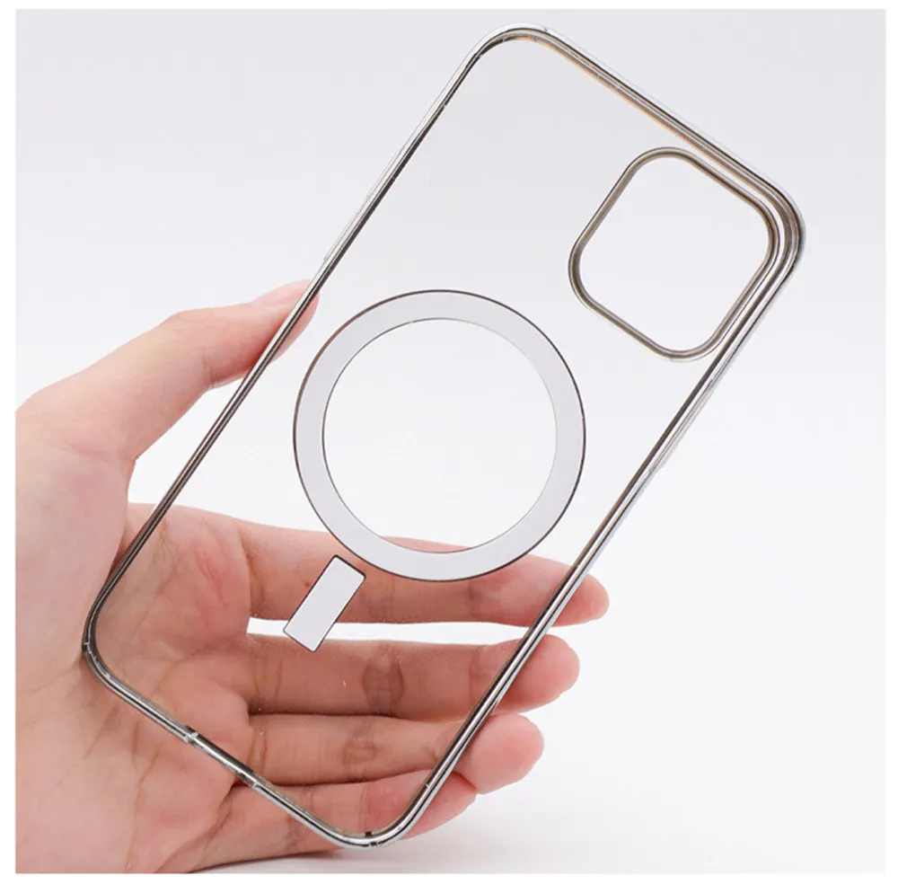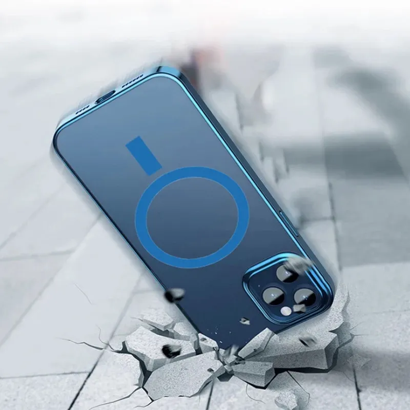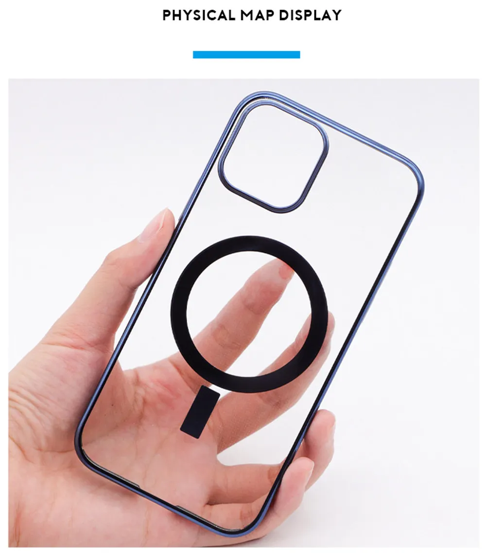 Гальванизированный жесткий поликарбонатный Магнитный чехол для телефона iPhone 12 Mini Pro Max Беспроводное зарядное устройство Магнитные Прозрачные зарядные чехлы