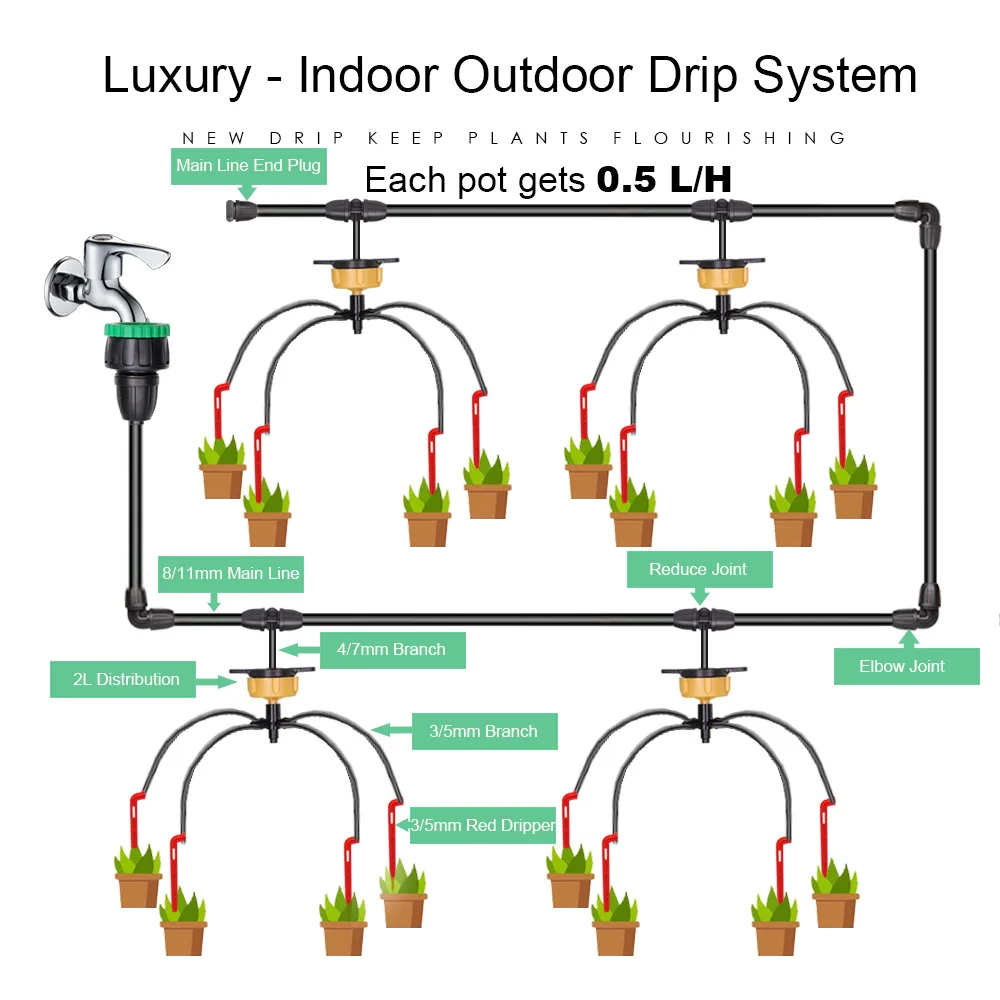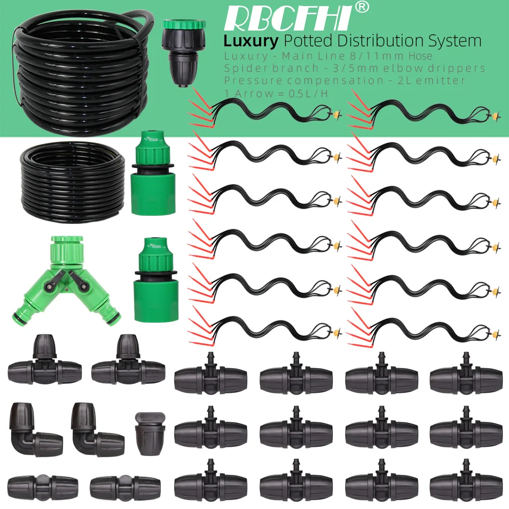 Доставка производится в течение 5-30 м Micro 38 ''основной линии комнатные оросительный капельный полив Системы 0.5Lч каждый Воронка-дриппер для распределения Человека-паука комплект Крытый парниковый