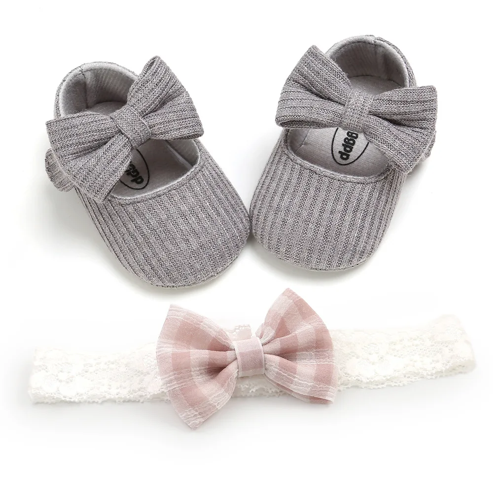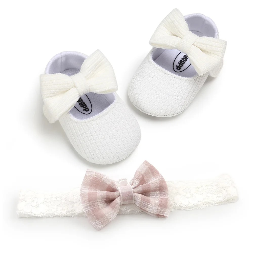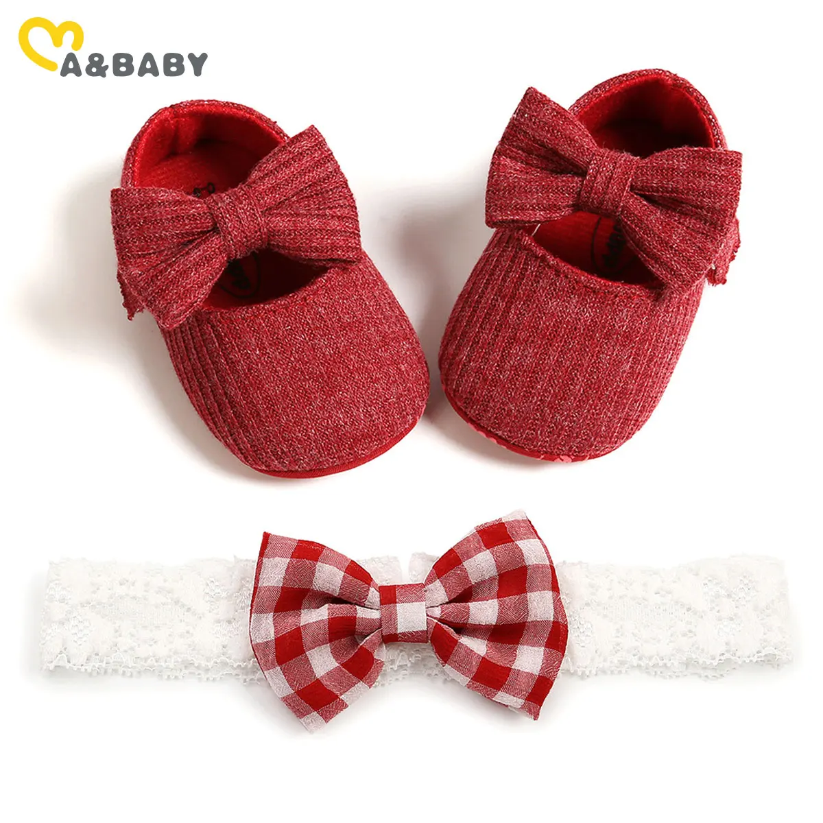 Ma и младенцев на весну-осень, на возраст от 0 до 18 месяцев, Рождественская Одежда для новорожденных; Одежда для маленьких девочек; Красная обувь с милым бантом; Клетчатый вязаный первые туфли для начинающего ходить ребенка ясельного возраста повязка на голову