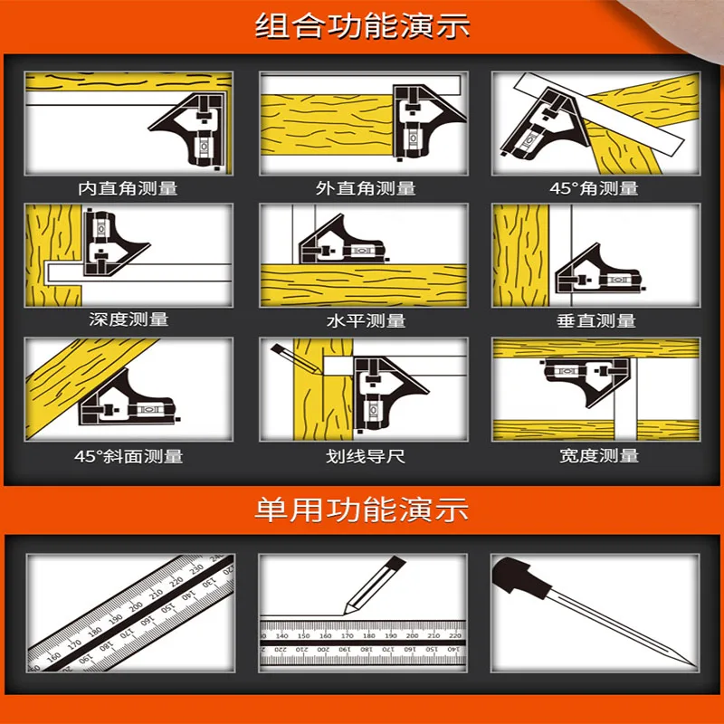 3 в 1 комбинированный квадратный набор 300 мм Угловая линейка 180 градусов транспортир Угол Finder Дух Уровень угол линейка Измерительный набор инструментов