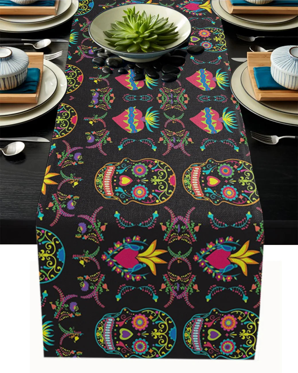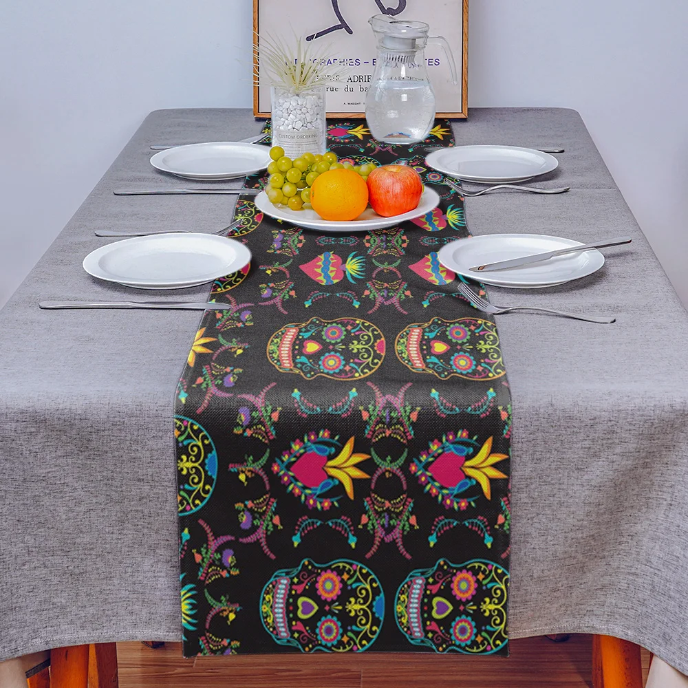 Мексиканский стол с черепами Runner Декор свадебного стола вечерние обеденный стол бегун домашняя декорация для дома и отеля скатерть для столовых приборов