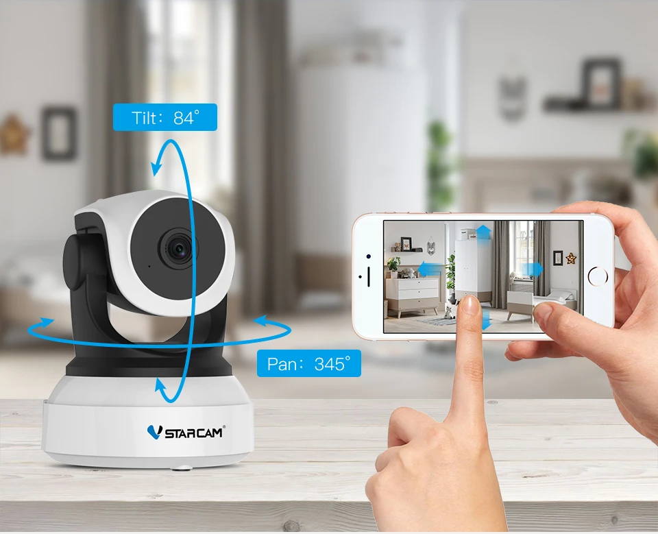 √ Панорамирование камеры 345 °, наклон 84 °, Диагональный угол обзора 101 °, обеспечивает больший и более широкий вид.