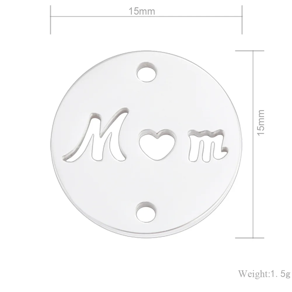 10 шт.лот, нержавеющая сталь, зеркальная полировка, круглые очаровательные соединители для мам, два отверстия для сделай сам, ожерелье, браслет, аксессуары 15 мм