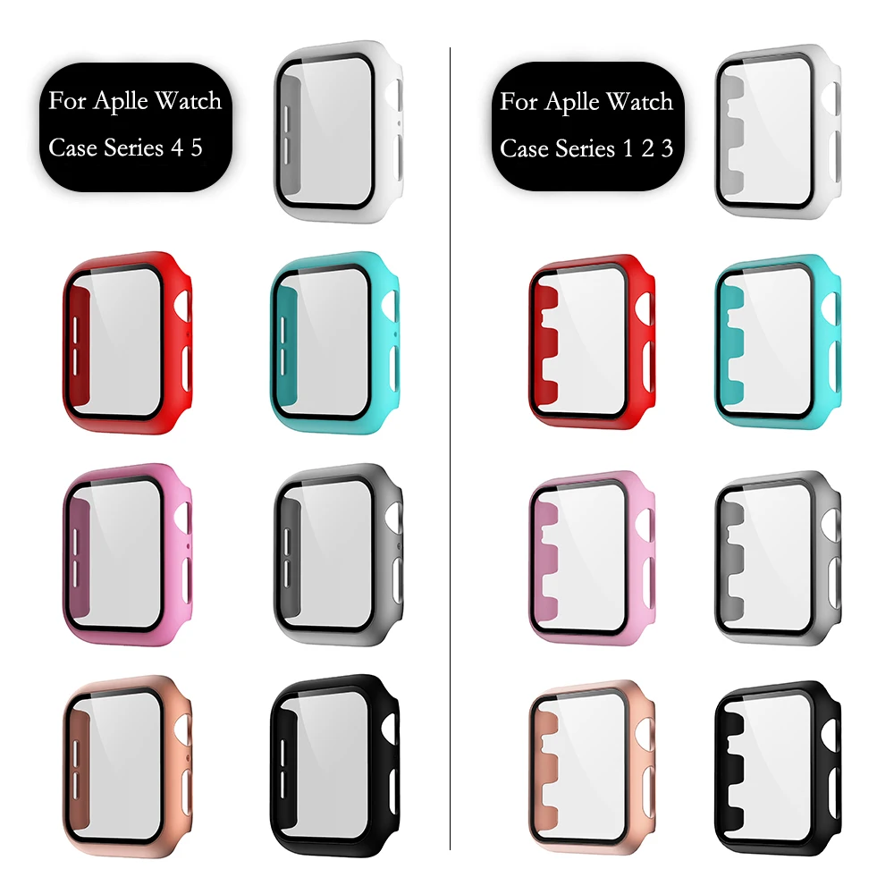 Защитный чехол для Apple Watch 6 SE 5 4 3 2, полностью матовый пластиковый бампер с твердой рамкой и стеклянной пленкой для iWatch 44 40 42 38