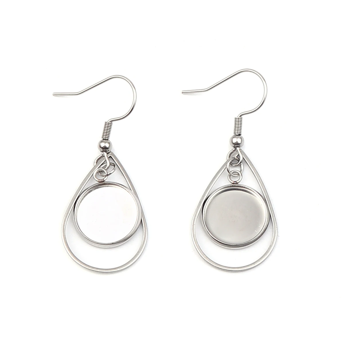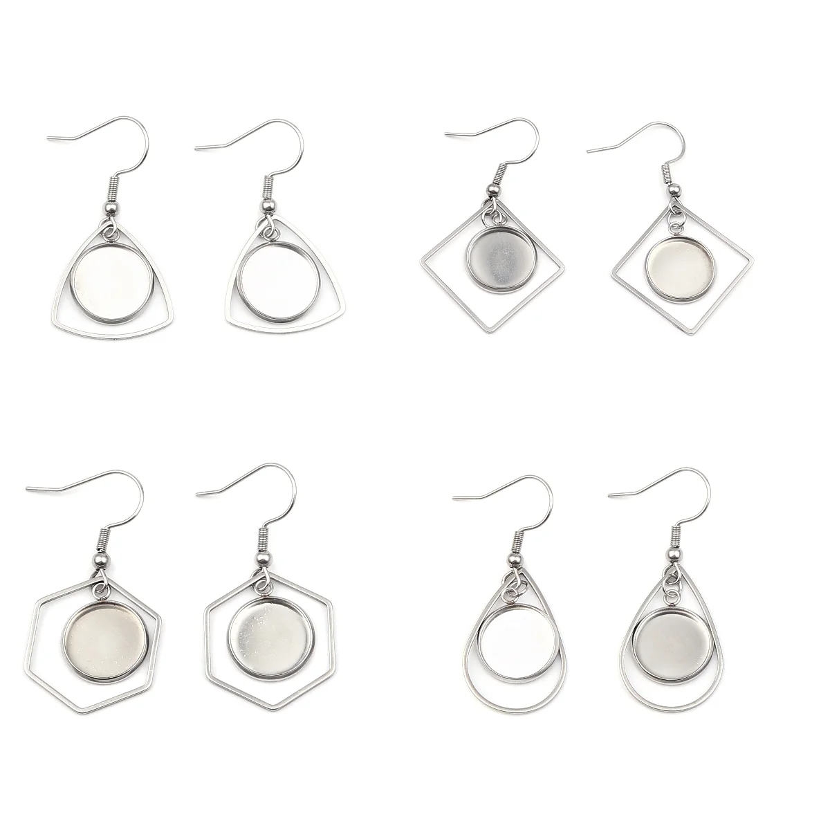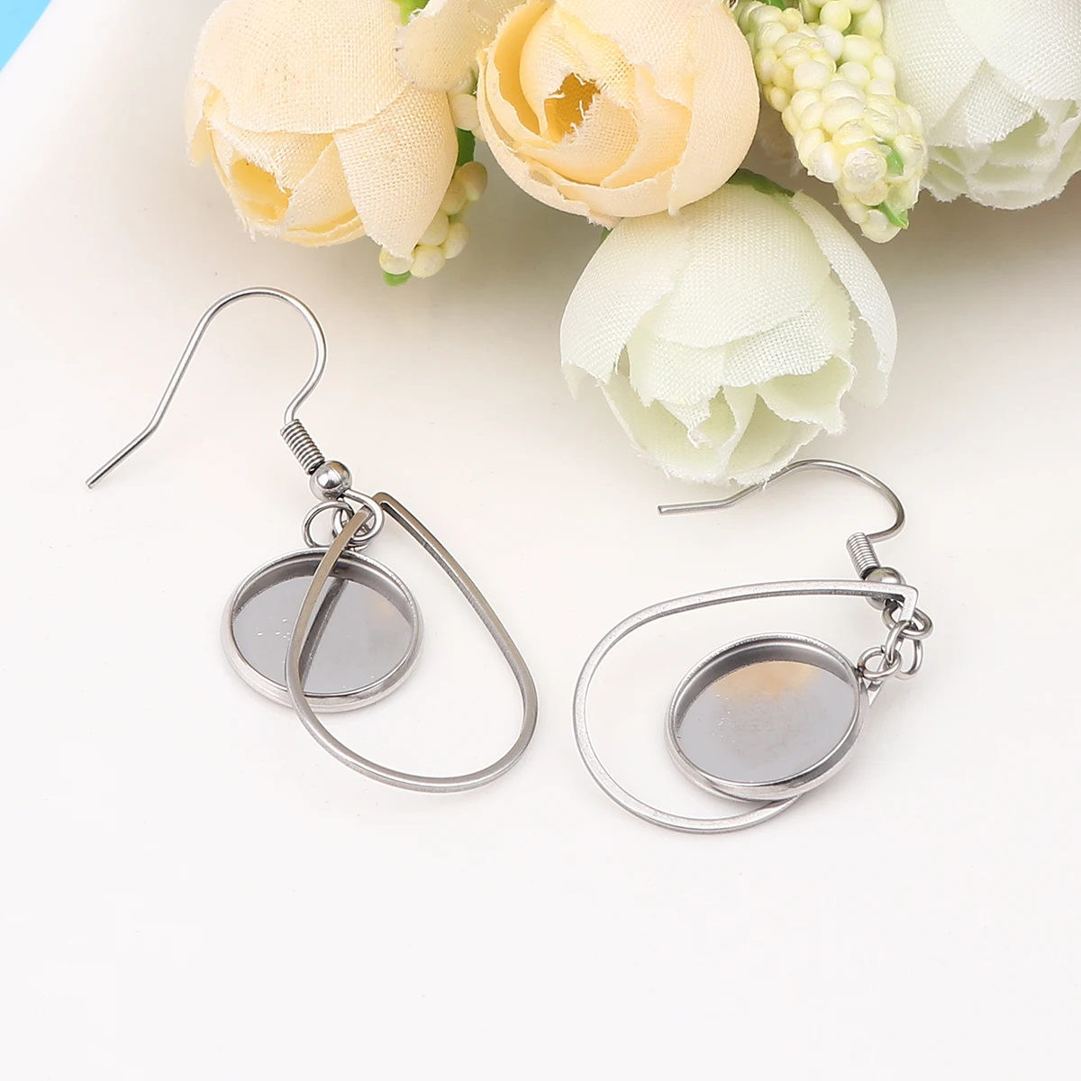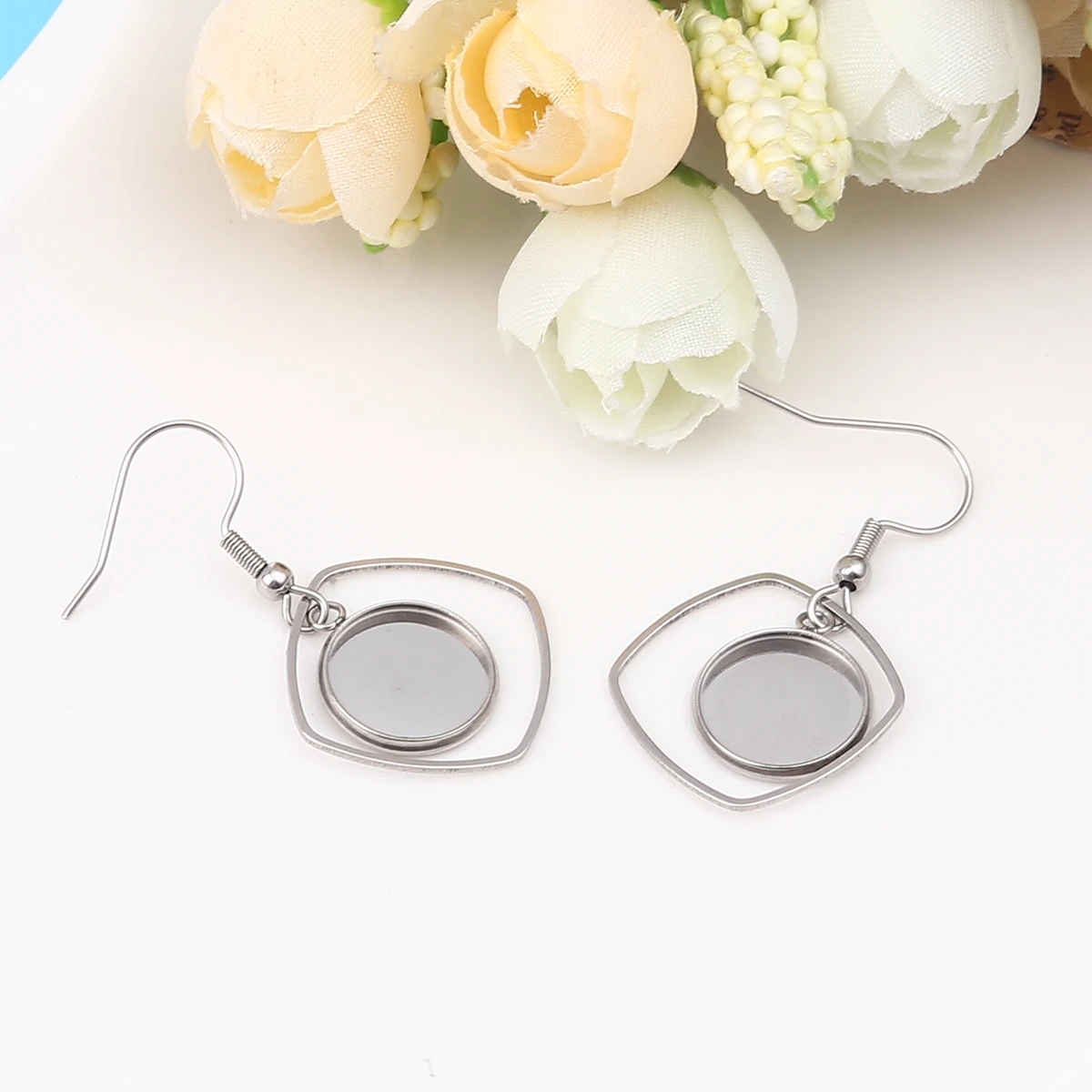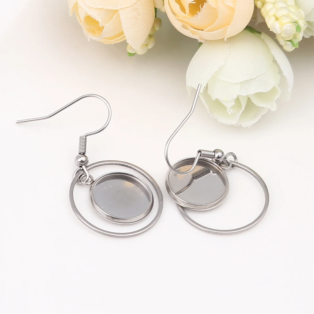 Не выцветает и не 12 мм Диаметр 4 шт. Нержавеющаясталь кабошон серьга настройки база DIY серьги-Крючки Выводы