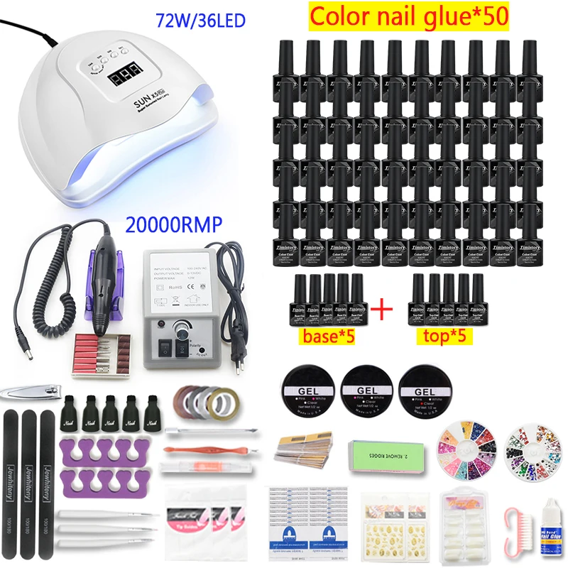 Гель-лак для ногтей с аппаратом 2000RMP и УФ-светодиодной сушилкой 2010 Вт72 Вт54 Вт, 504030120 цветов
