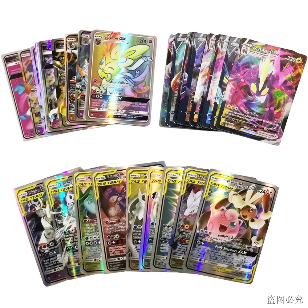 Карты покемона блестящие карты 60100200 шт. GX не повторяют телефон