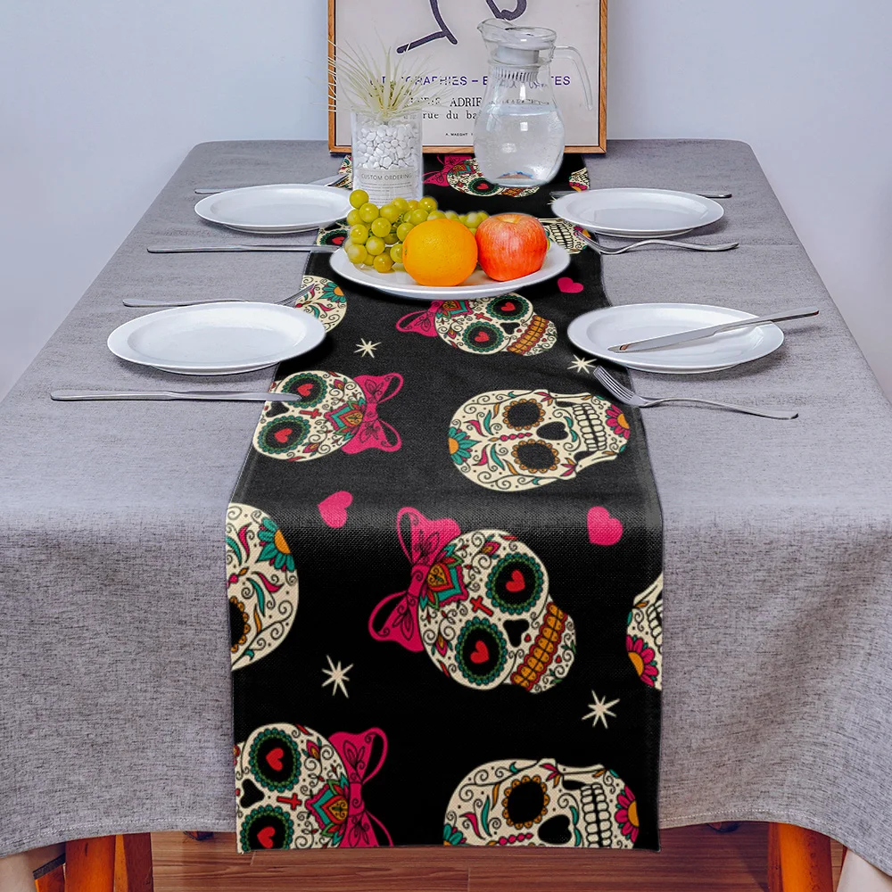 Дорожка для свадебного стола, мексиканская Декоративная скатерть для вечерние денного стола, украшение для дома и отеля, стол с черепами