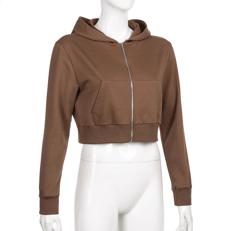 Худи HOUZHOU коричневое винтажное Y2k, укороченный топ в стиле Хара...