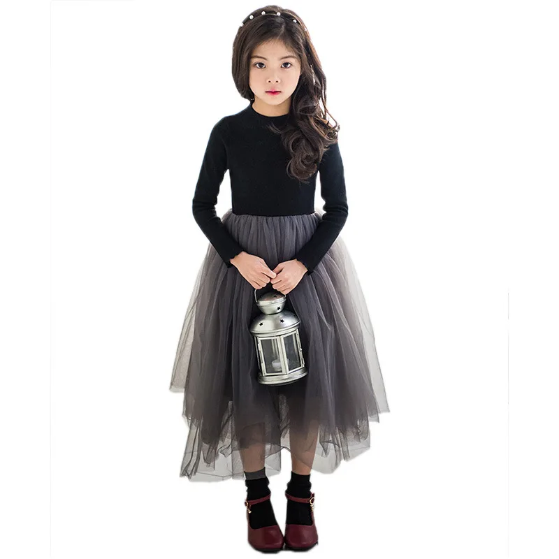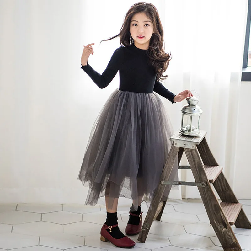 Винтажное зимнее танцевальное платье для девочек, рождественские детские сетчатые платья принцессы, однотонная детская одежда с длинным рукавом для девочек 4, 5, 7, 9, 11, 13 лет