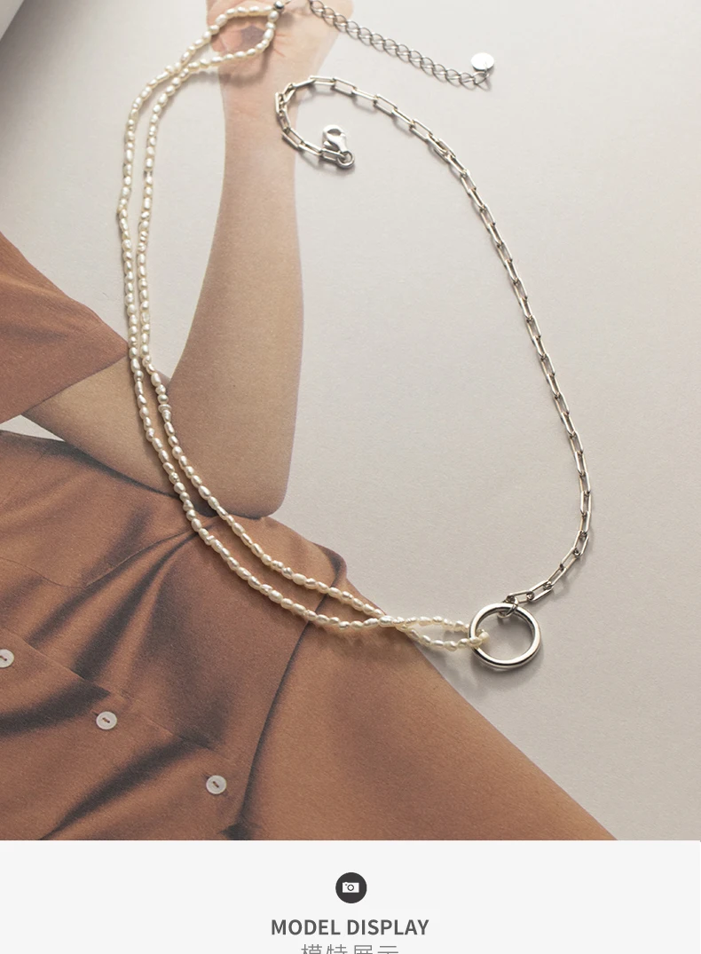 Ожерелье из серебра 925 пробы с маленьким жемчугом в стиле барокко, женское простое кольцо в японском стиле, асимметричная цепочка до ключиц