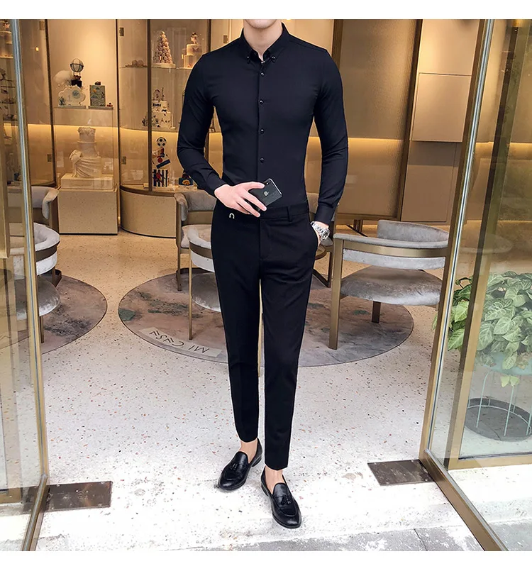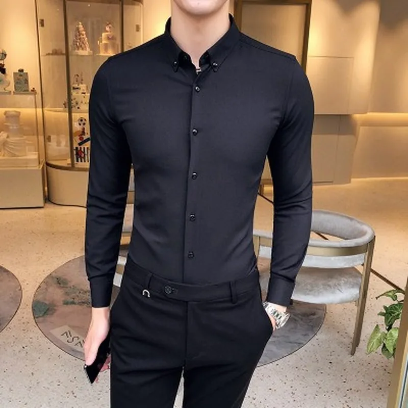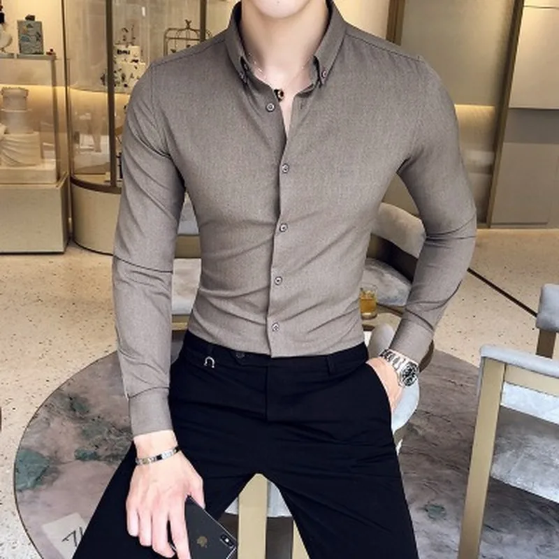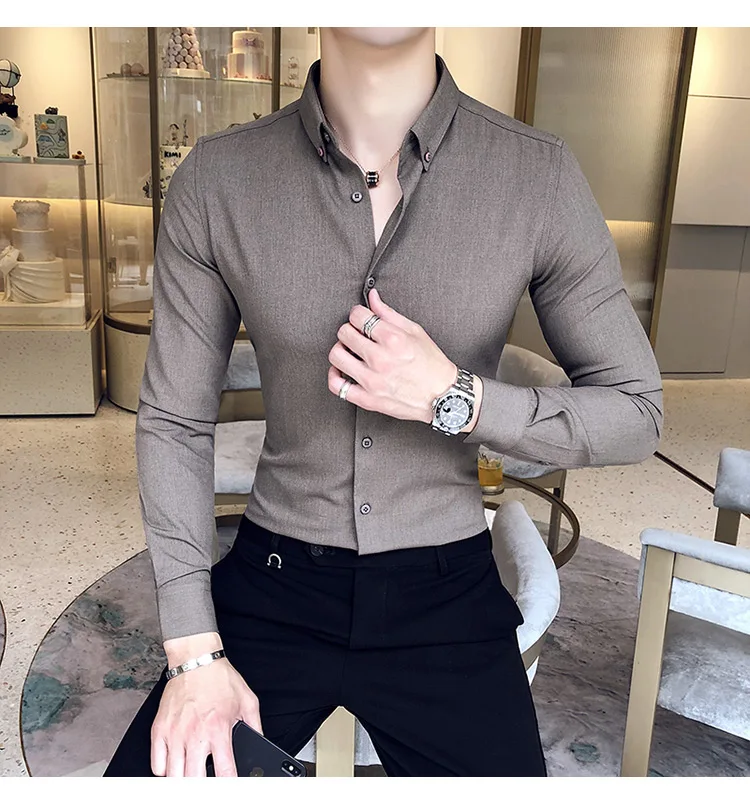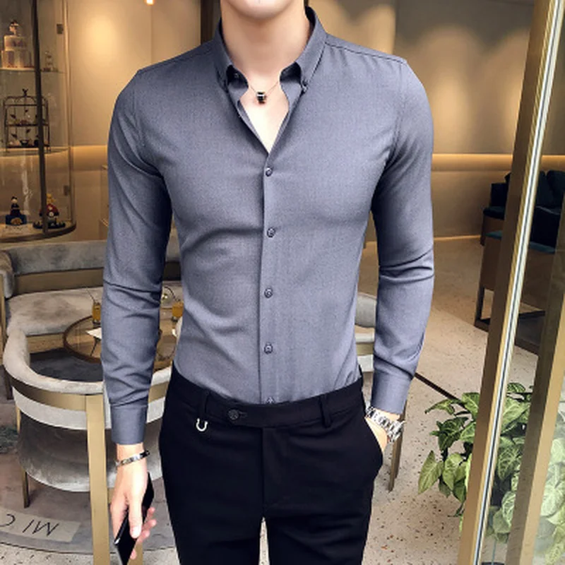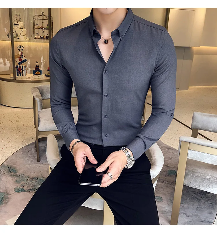 Мужская Изысканная Однотонная рубашка Yingya стиль джентльмена Молодежная Высококачественная деловая мужская повседневная приталенная рубашка с длинными рукавами