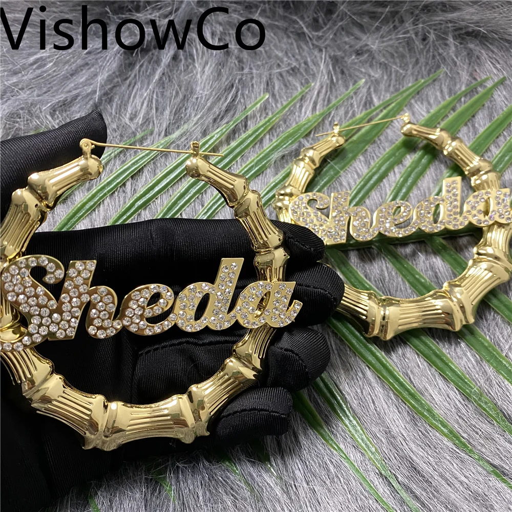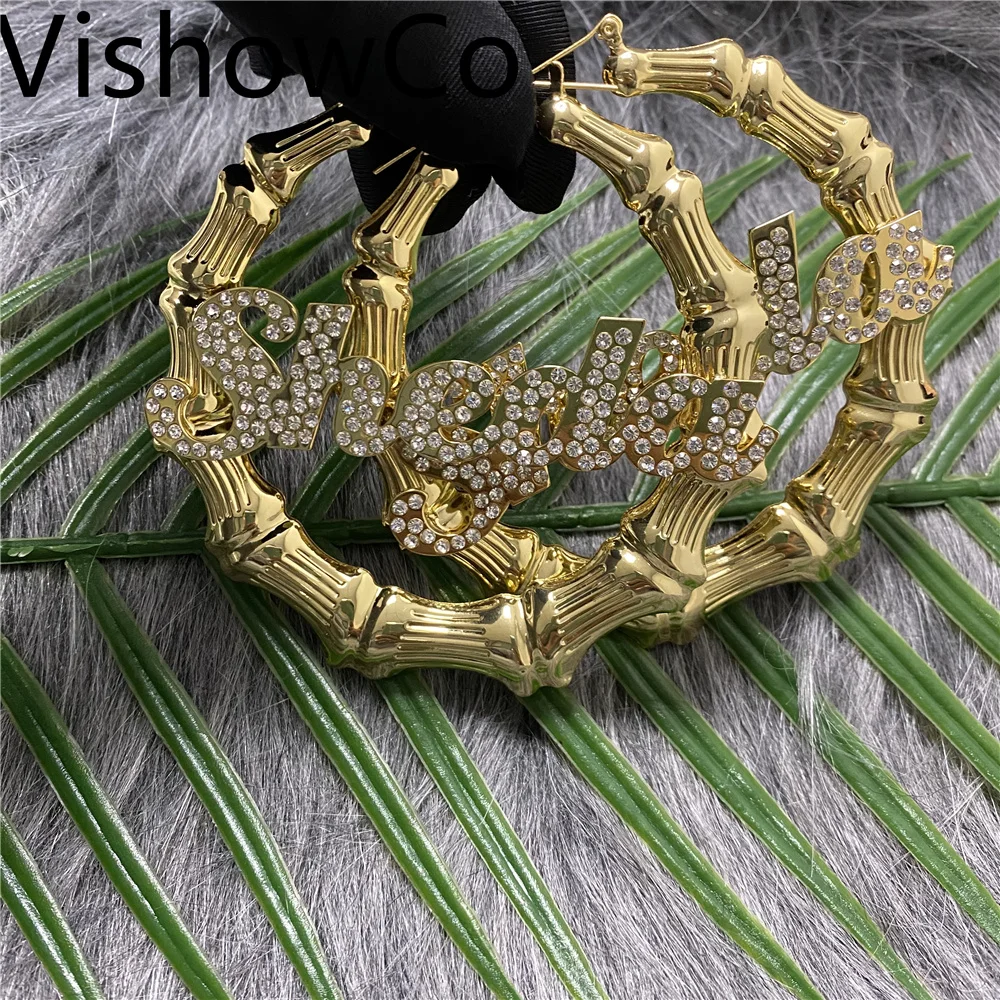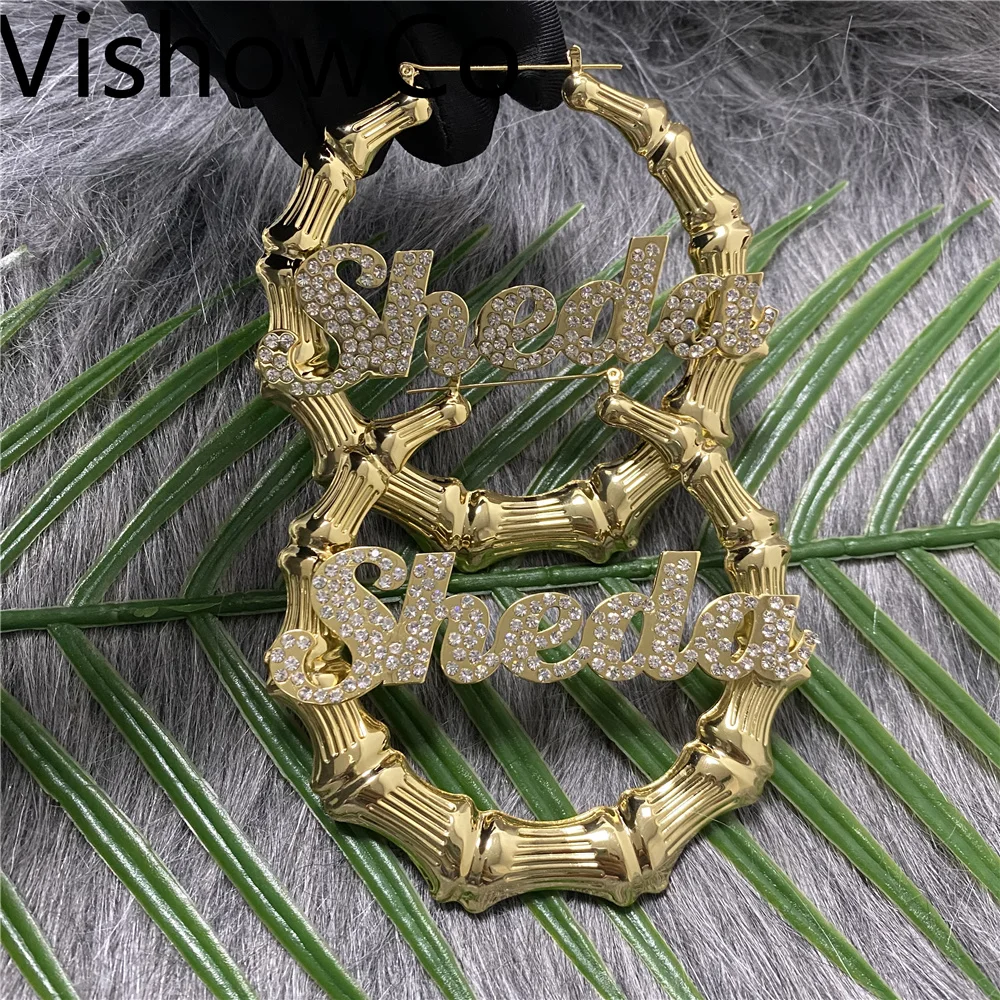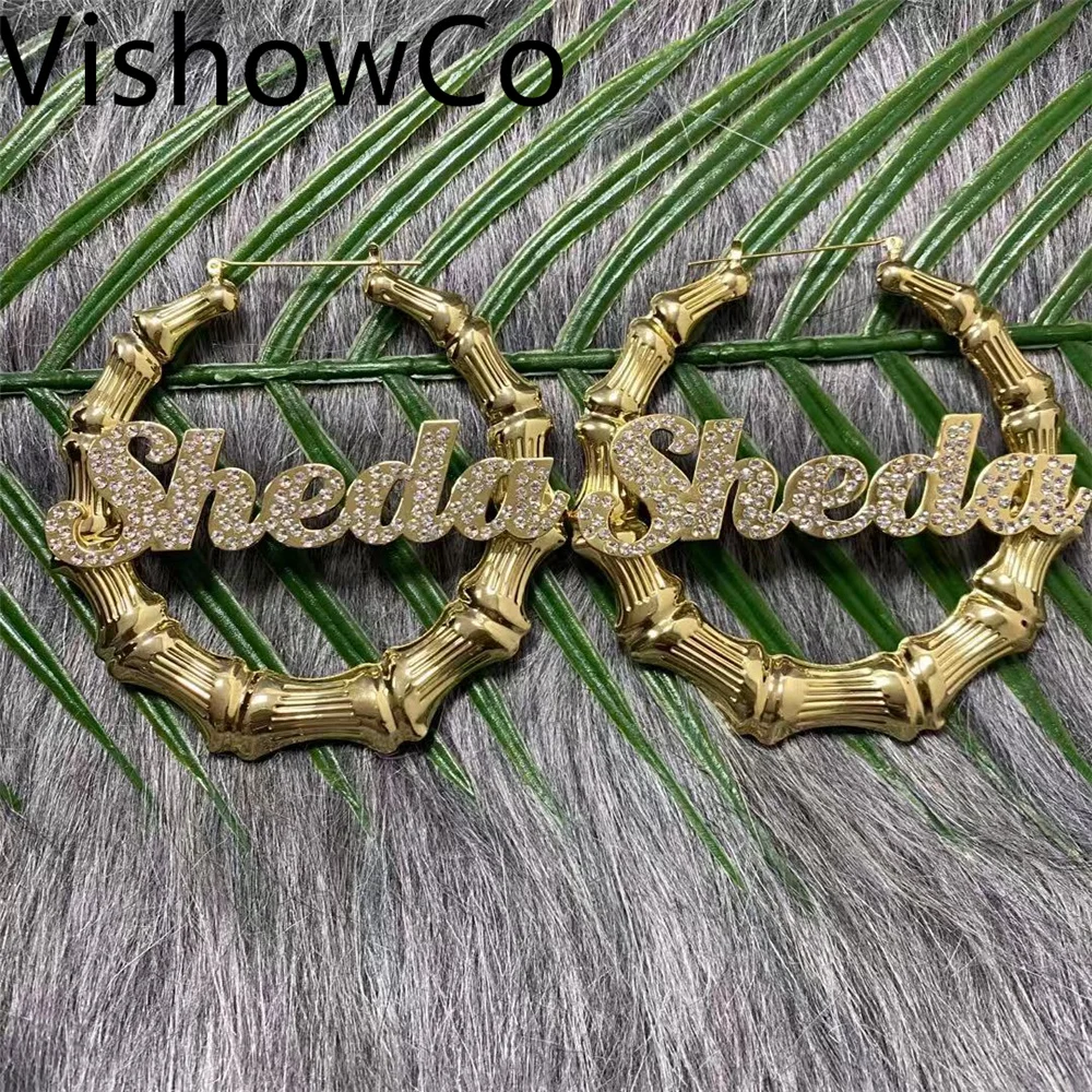 Серьги VishowCo, в стиле хип-хоп, с именем на заказ, сексуальные, бамбуковые, круглые, ювелирные изделия с бриллиантами, подарок на праздник