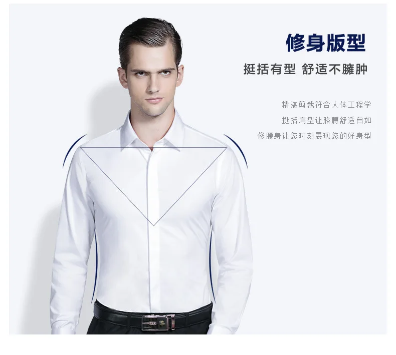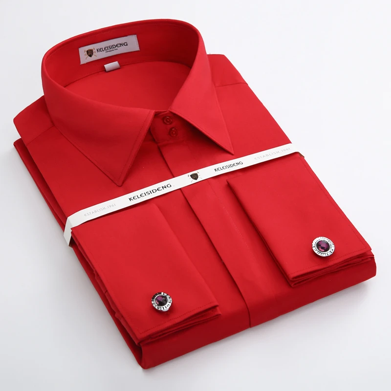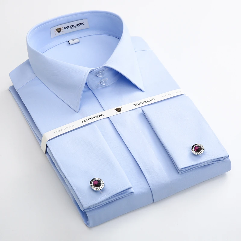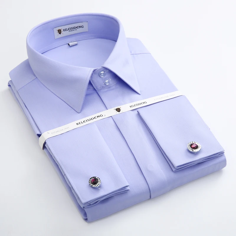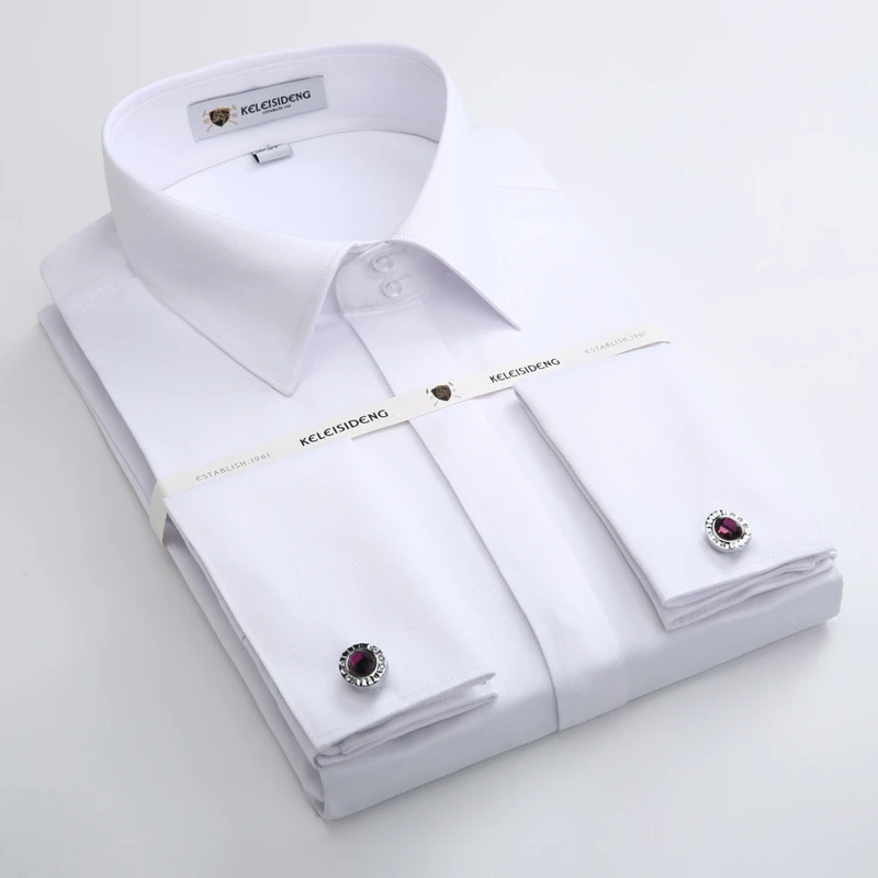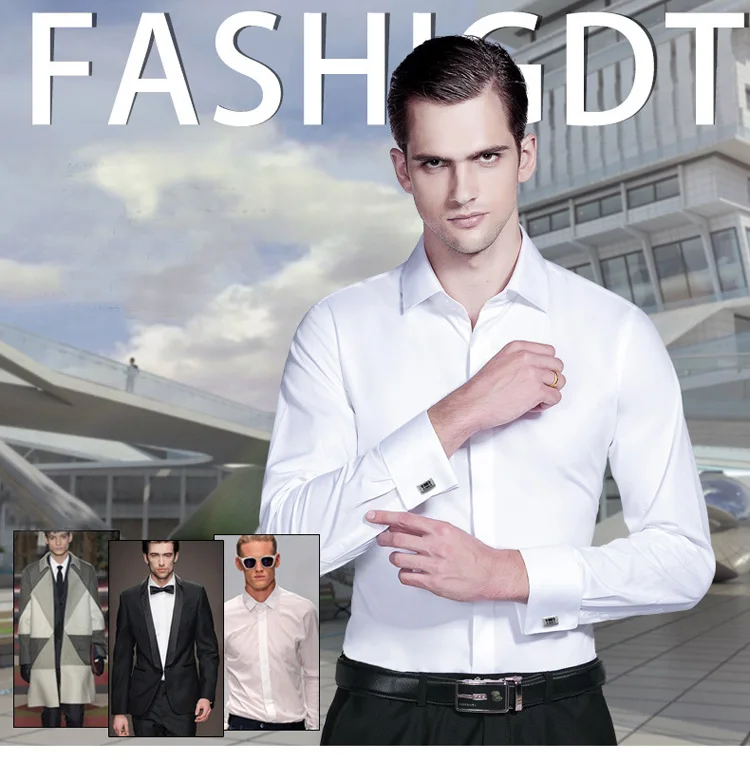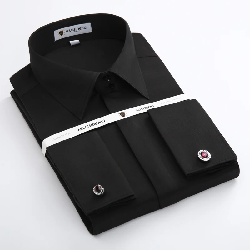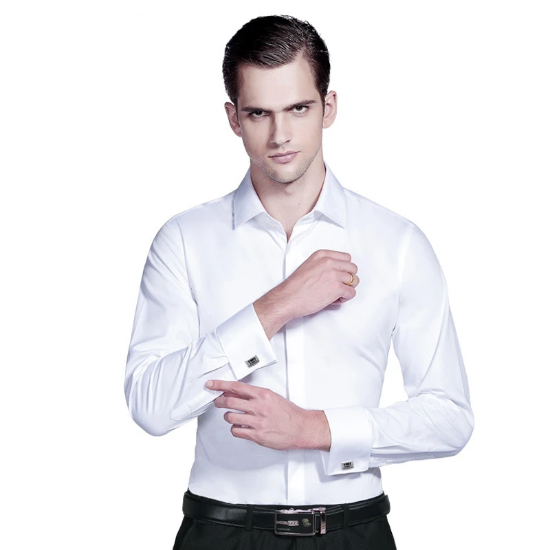 Мужская классическая рубашка с французскими манжетами и длинными рукавами
