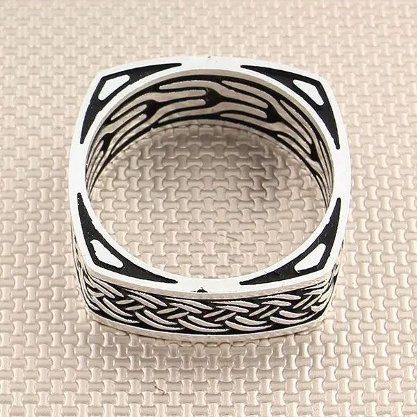 Прямоугольное мужское серебряное кольцо с османским мотивом, Сделан...