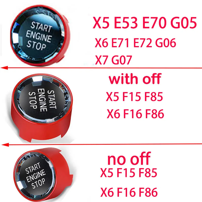 Обратите внимание, что X5 F15 F85 X6 F16 F86 имеет 2 стиля, с кнопкой «off» и знаком «off», пожалуйста, посмотрите вашу кнопку, прежде чем купить, спасибо Кристальный стиль имеет световой эффект