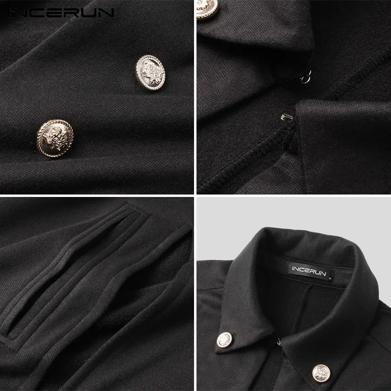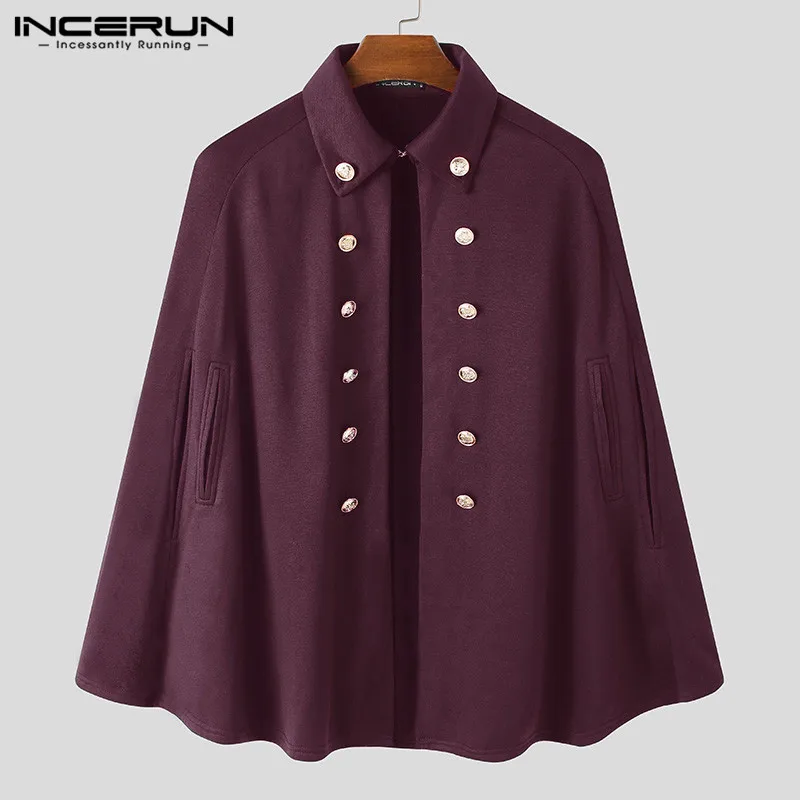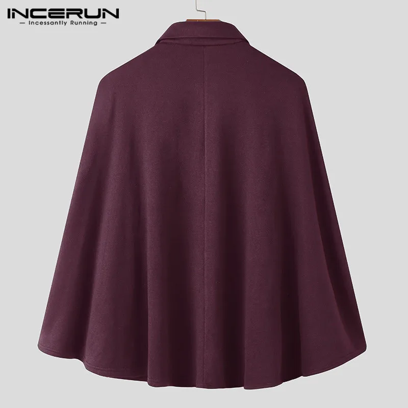 INCERUN Для мужчин сплошной Цвет; Двубортный Тренч; Свободное пальто накидки человек c воротником пончо Винтаж Необычные куртки Уличная S-5XL
