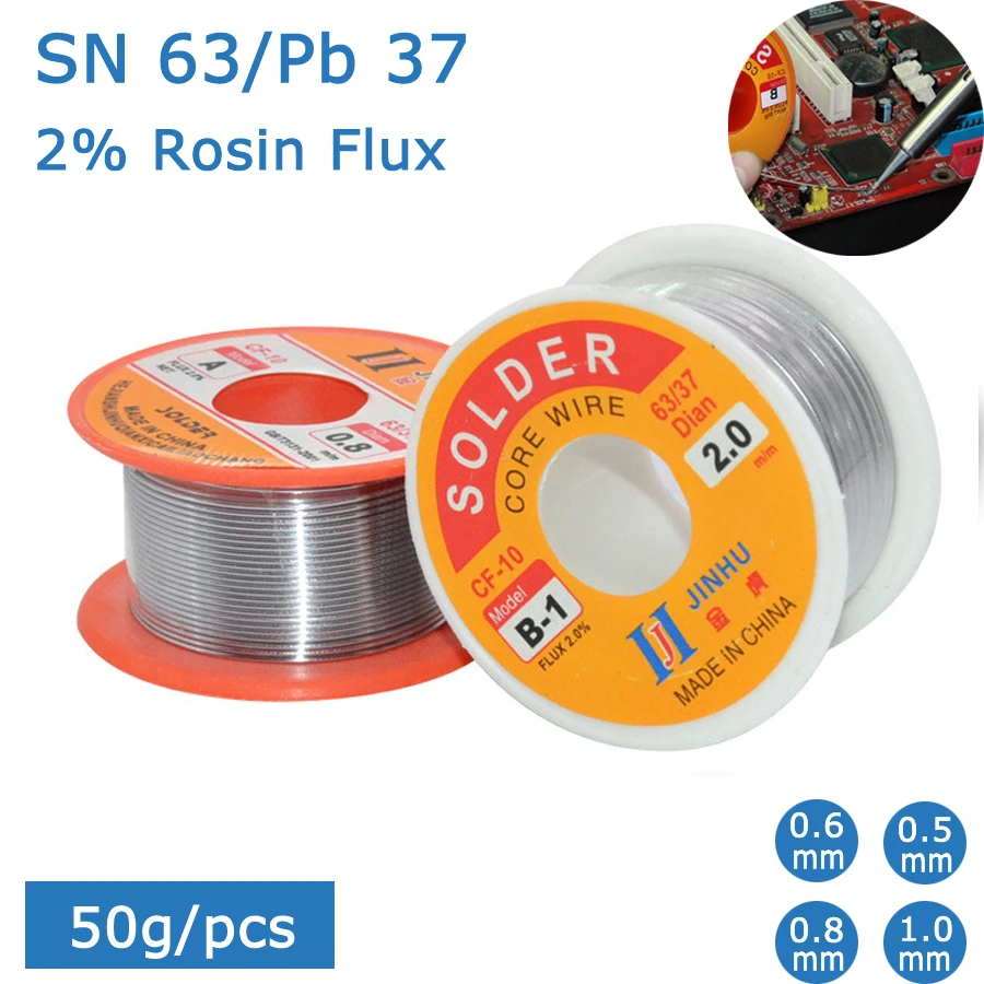 Оловянно-свинцовая и Оловянная проволока, припой с сердечником из расплавленной канифоли, неочищенная проволочная катушка для пайки, 50 гшт., 0,50,60,81, 6337, FLUX 2.0%, 45 футов