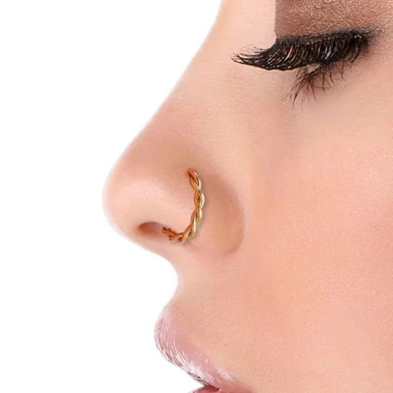 Новинка витое кольцо для носа в форме с для женщин ювелирное изделие для имитации пирсинга тела Индивидуальные Кольца для носа губ 1 шт. кольцо для носа