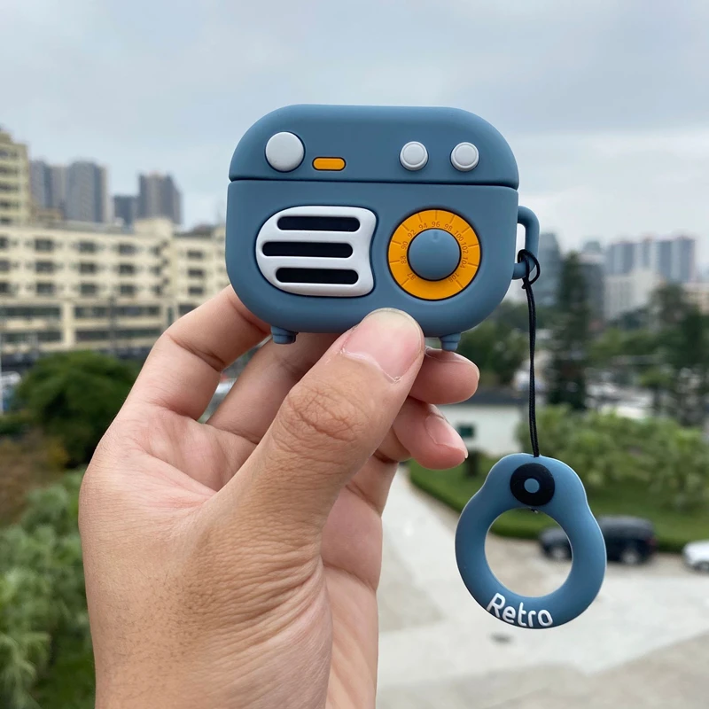 Чехол для Airpods Pro, мягкий силиконовый чехол для гарнитуры, милый мультяшный Ретро Радио, Роскошные Защитные Чехлы, чехол для Airpods с Keychai