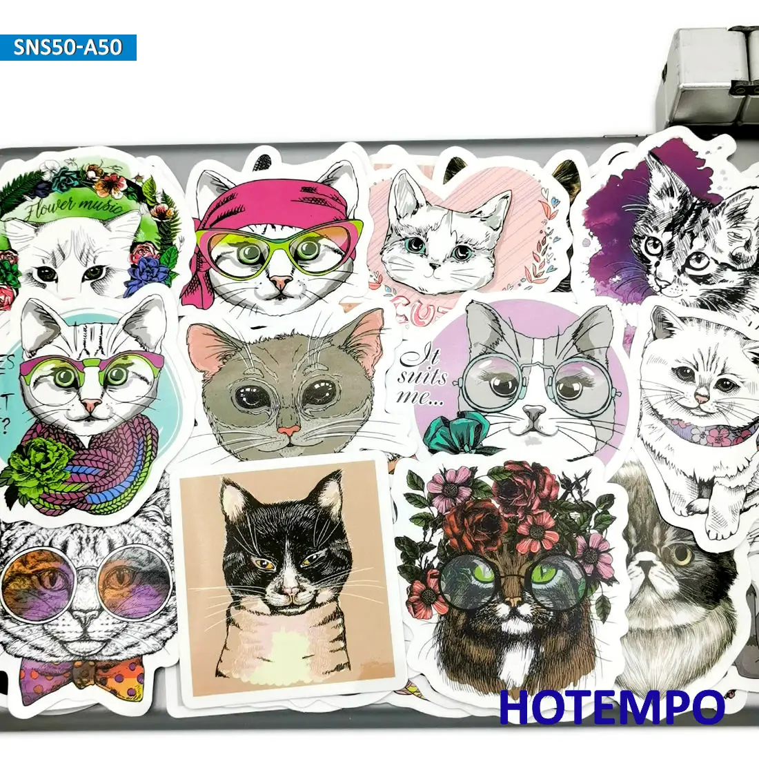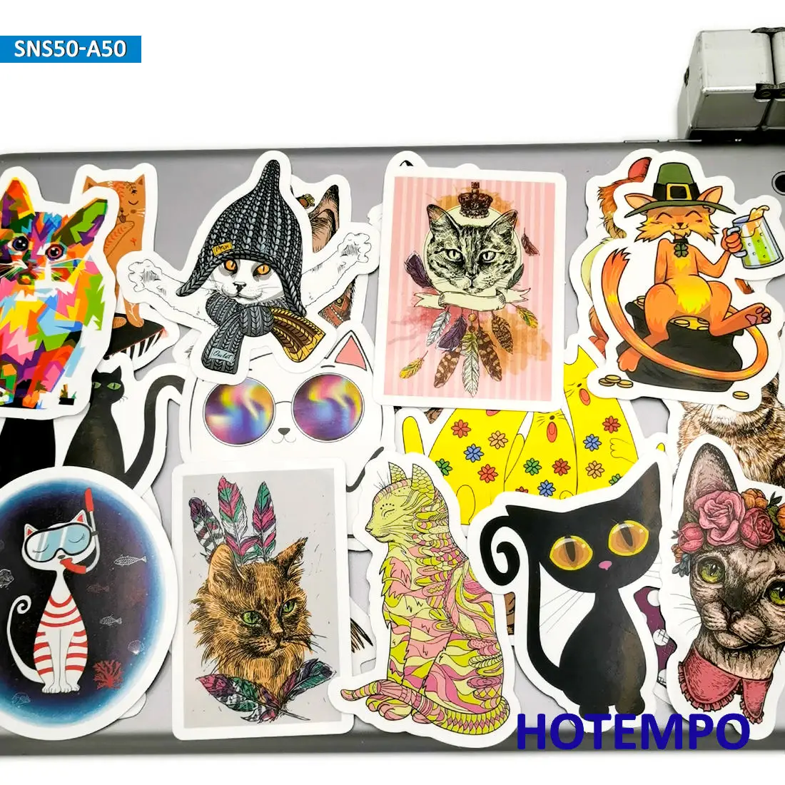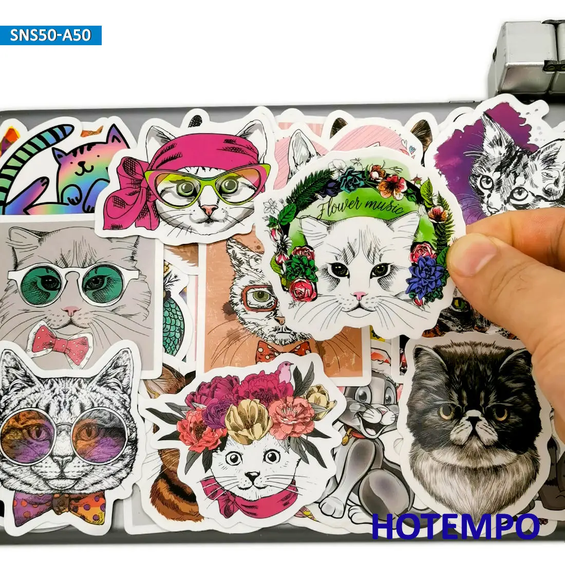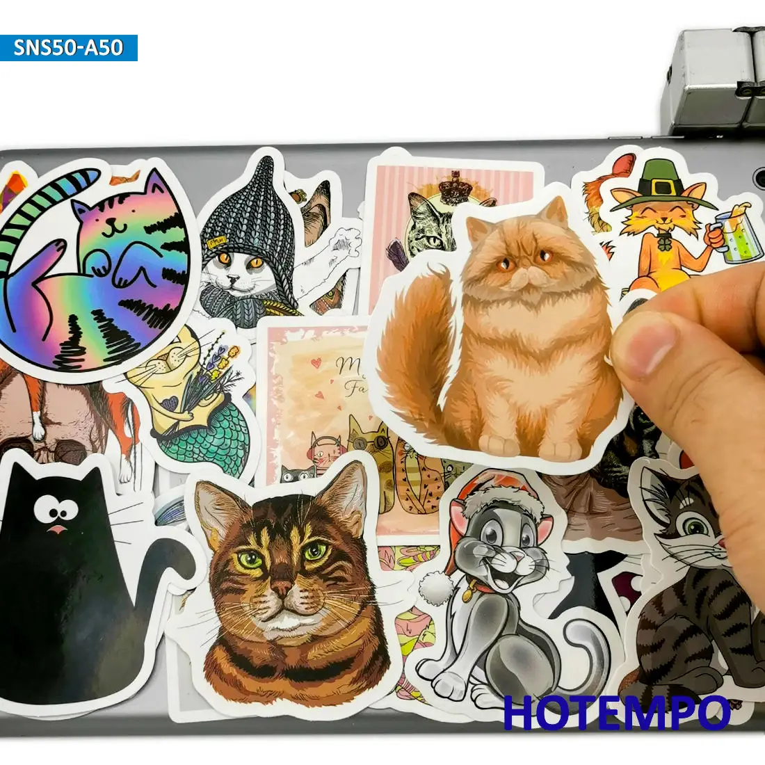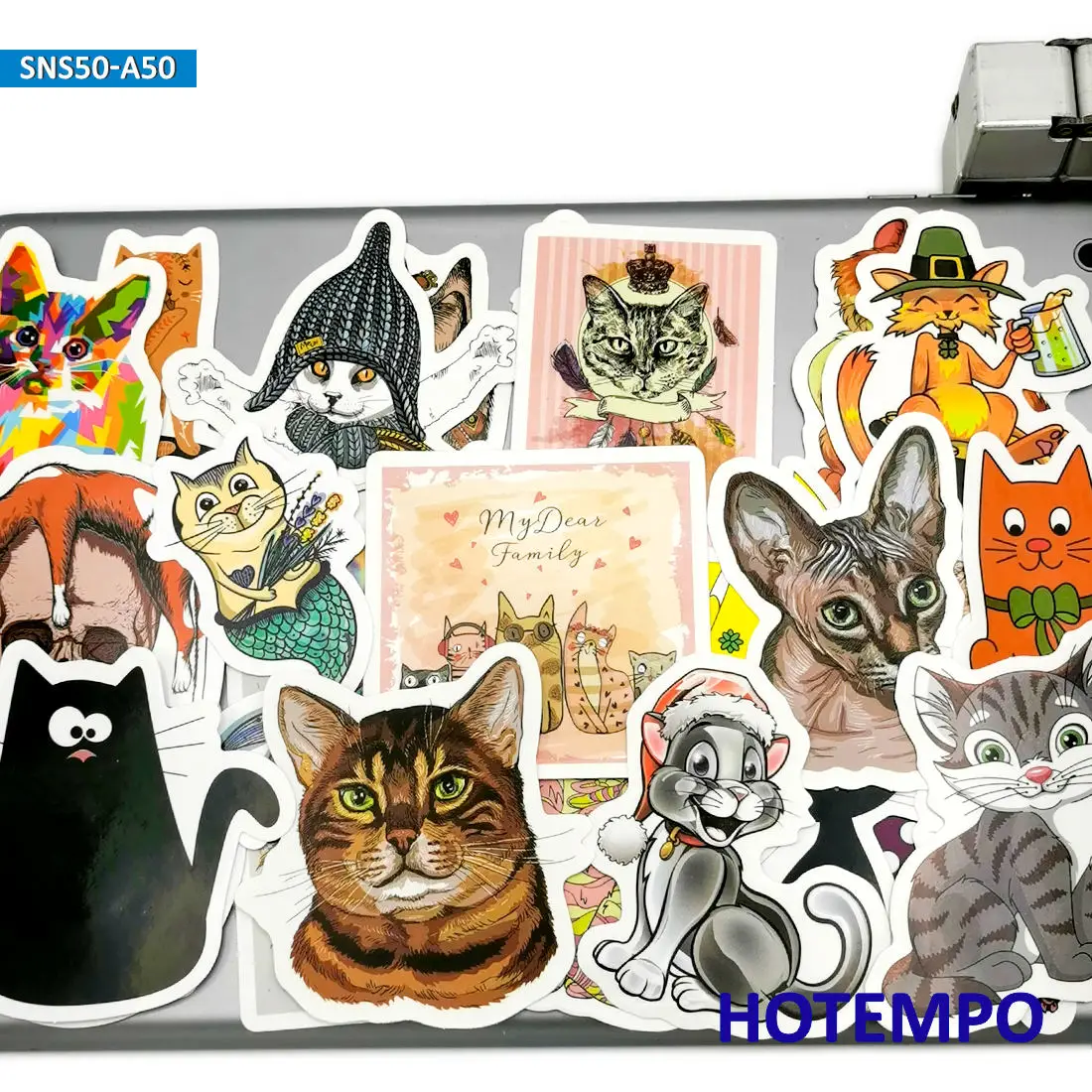 50 шт в наборе, красивый комплект одежды с изображением кота из мультфильмов в ассортименте Водонепроницаемый наклейки пакет для детей ноутбук DIY костюм чехол для телефона чехол скейтборд велосипед автомобиля