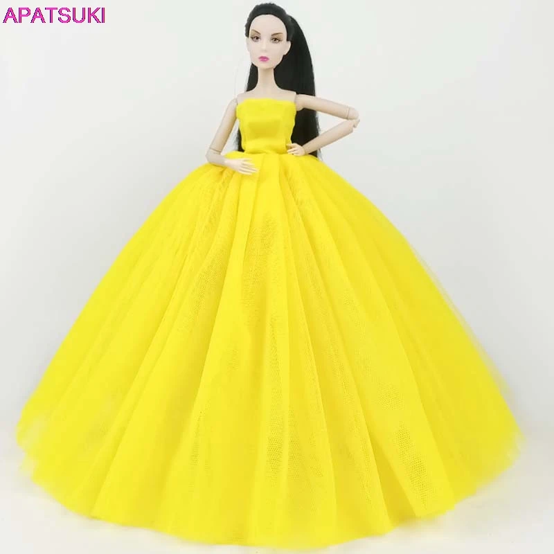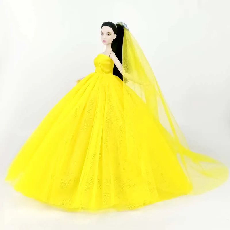 Вечернее платье для кукол Барби, желтое, свадебное платье с длинным хвостом, вуаль 16