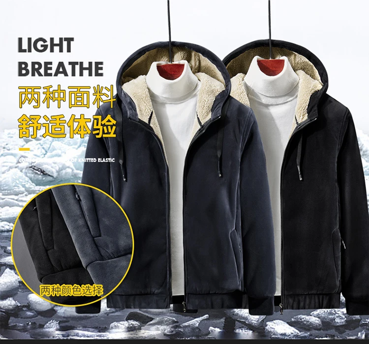 Новинка 2021, мужское повседневное теплое флисовое пальто с капюшон...