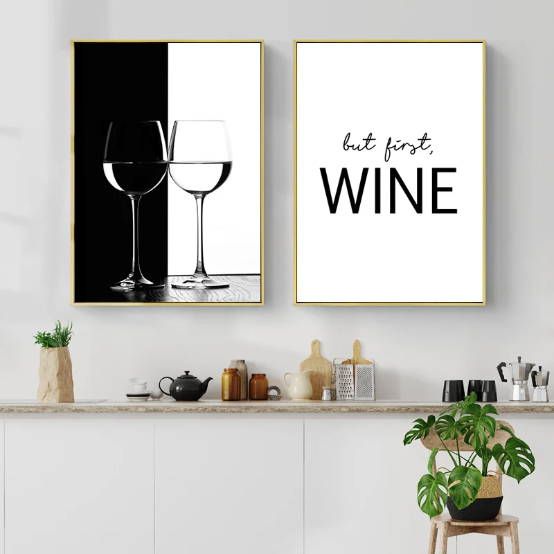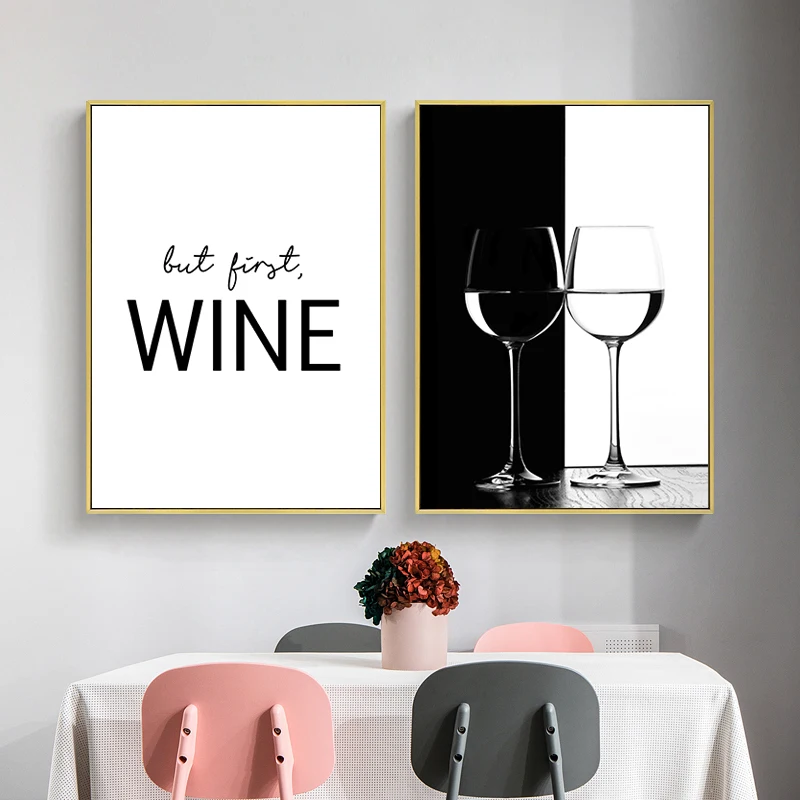 Но сначала вино Цитата бар стены в искусстве черный, белый цвет кухонный плакат холст картины Современные ресторанные напитки Wall Art Печать HD3095
