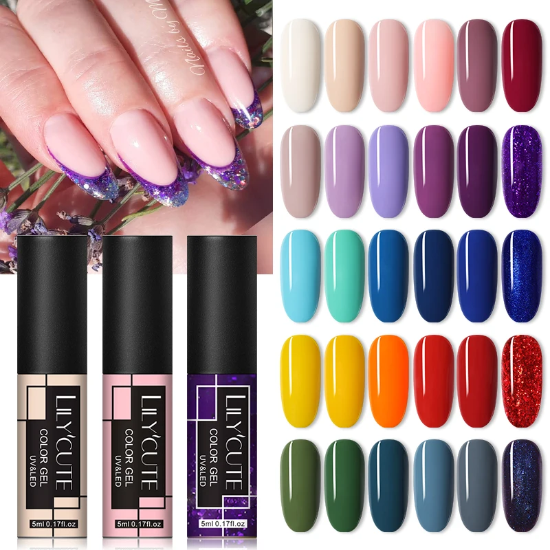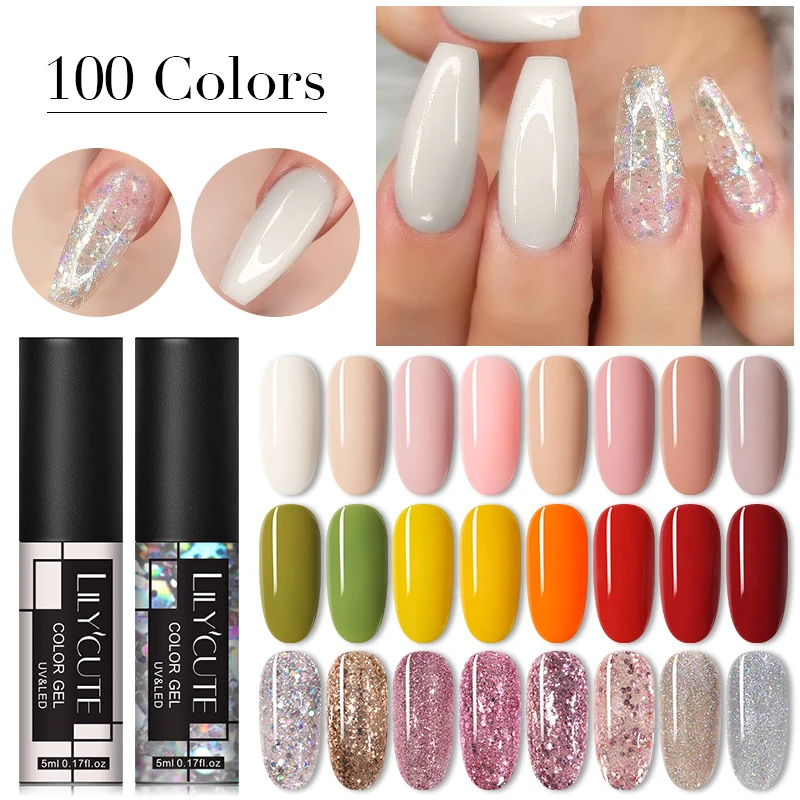 LILYCUTE 2 шт.компл. набор блестящих УФ-гель для ногтей телесного цвета светодиодные гель-лаки для ногтей полуперманентный отмачиваемый УФ гель для ногтей