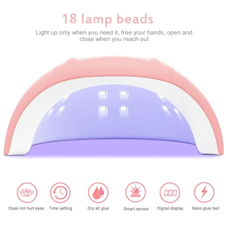 Светодиодная УФ-лампа для ногтей для сушки гель-лака, сушилка с автоматическим датчиком лампа для полировки ногтей, 30s60s90s, 36 Вт, 18 шт.