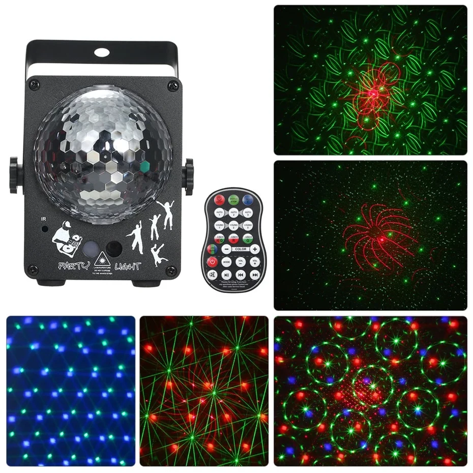 Версия диско-мяча для цвета RGB. 3 комбинации пучков (красный, зеленый, красный и зеленый) с красочным дискотечным шаровым светильник, такое сочетание с несколькими эффектами, чтобы создать более прекрасную атмосферу. Он может широко покрыть площадь 269кв. ft-323sq.ft на высоте 3 м после тестирования.Пульт дистанционного управления может регулировать включение/выключение, двигатель, светодиодный светильник и лазерный светильник, переключать 3 режима работы и 3 режима воспроизведения музыки. Звук активирован, вспыхивает в ритме музыки, создавая фантастическую атмосферу. Просто наслаждайтесь красочной ночью!Высококачественный корпус из алюминиевого сплава, его можно разместить на столе или земле или повесить на потолок.Широко используется для дискотеки, балльных комнат, отелей, катков, общественных площадей, семейных встреч, баров, КТВ, вечерние, концертные и фестивальные, такие как Рождество, Хэллоуин и т. д.