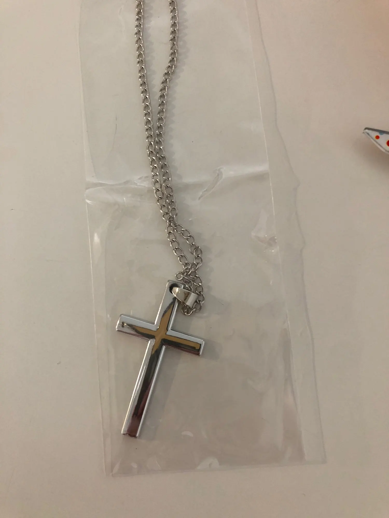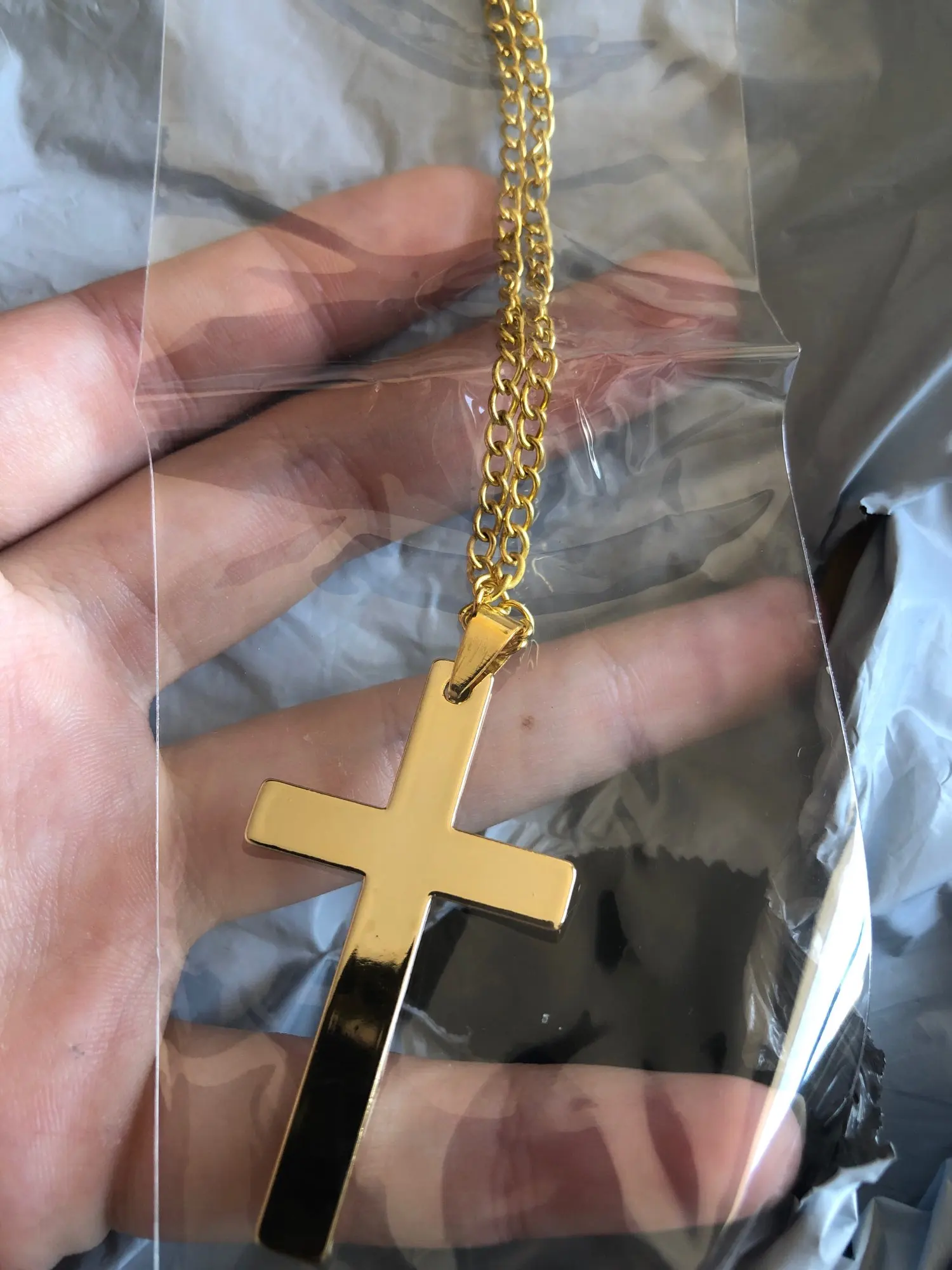 Очень доволен пакетом! Заказ был очень хорошо упакован и защищен несколькими слоями. В целом ожерелье очень хорошего качества: цепь довольно длинная и может быть отрегулирована на вкус, в то время как крест больше, чем кажется на фото. Очевидно, что материал не серебристый, но он довольно твердый и не выглядит как пластик, на мой взгляд, он похож на фантазию, материал мне совсем не нравится. Ожерелье не весит, хотя крест немного весит, его очень удобно носить и отлично смотрится с одеждой. Я очень доволен этим заказом, я буду продолжать покупать у этого продавца.