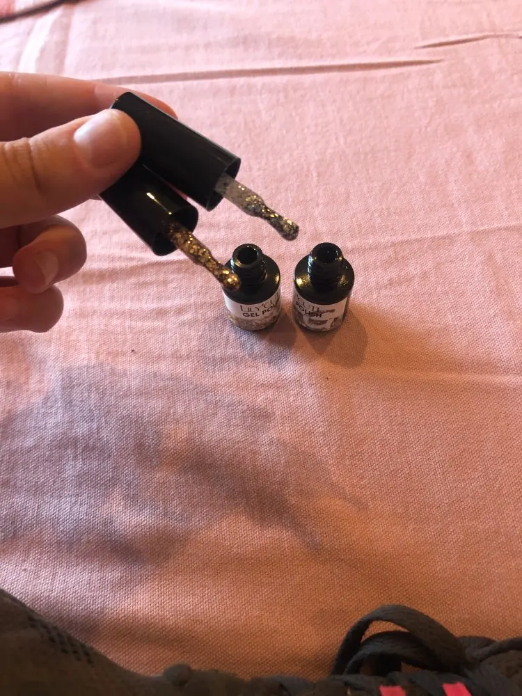 Цвет лака без блесток, не соответствует совсем, почти белый. Безобразие, зря выкинула деньги.
