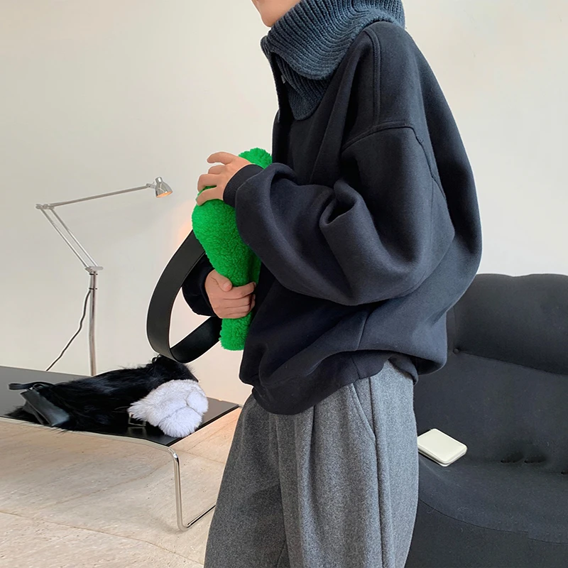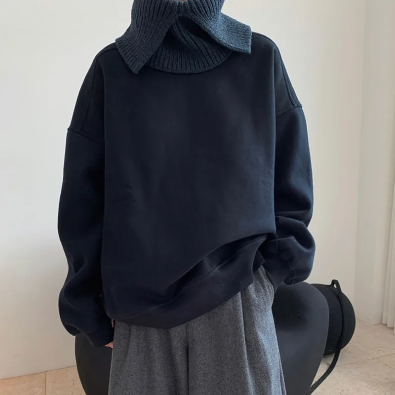 LANMREM 2022 Зимний новый модный Теплый черный Универсальный свитер с длинными рукавами и круглым вырезом для женщин 2A2704