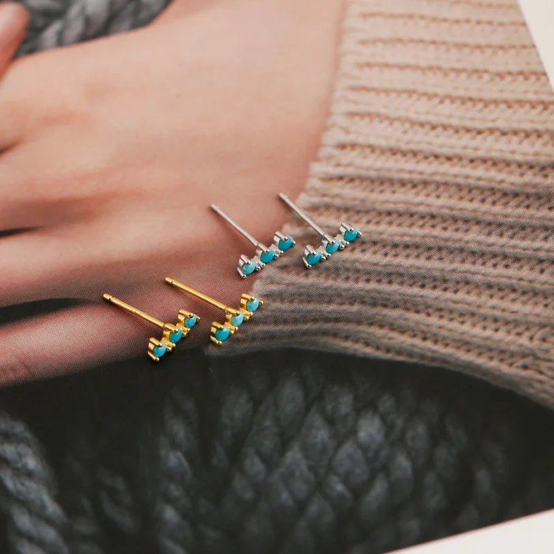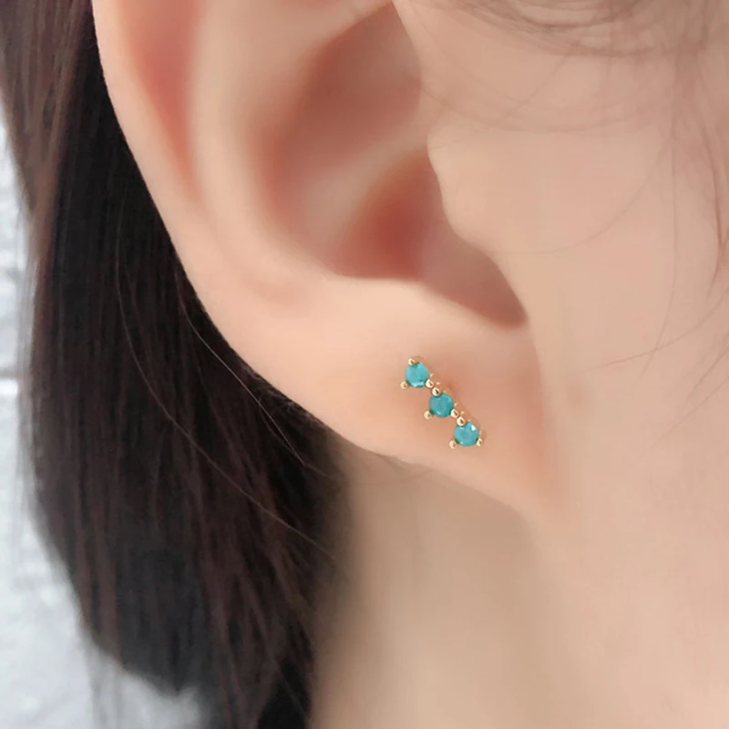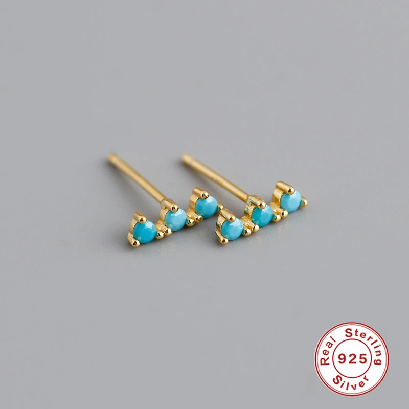 GS реальные 925 стерлингового серебра бирюзовый голубой циркон полоса геометрические бар, серьги со шпилькой, для Для женщин богемные серьги ювелирных изделий