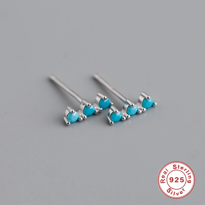 Женские серьги-гвоздики из настоящего стерлингового серебра 925 пробы с синим бирюзовым цирконием в полоску, геометрические, богемные ювелирные изделия