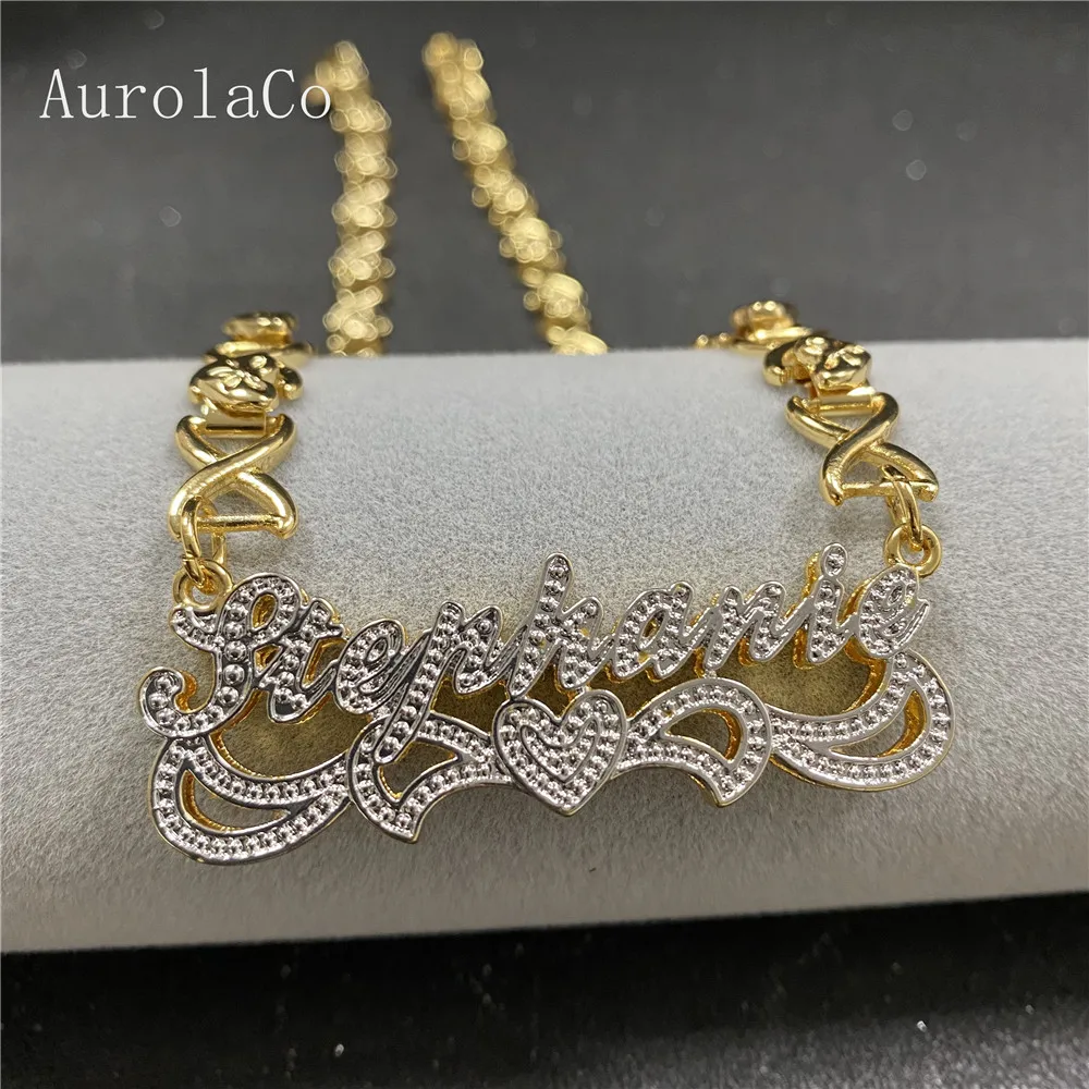 Двойное позолоченное ожерелье с именем на заказ Aurolaco набор акри...