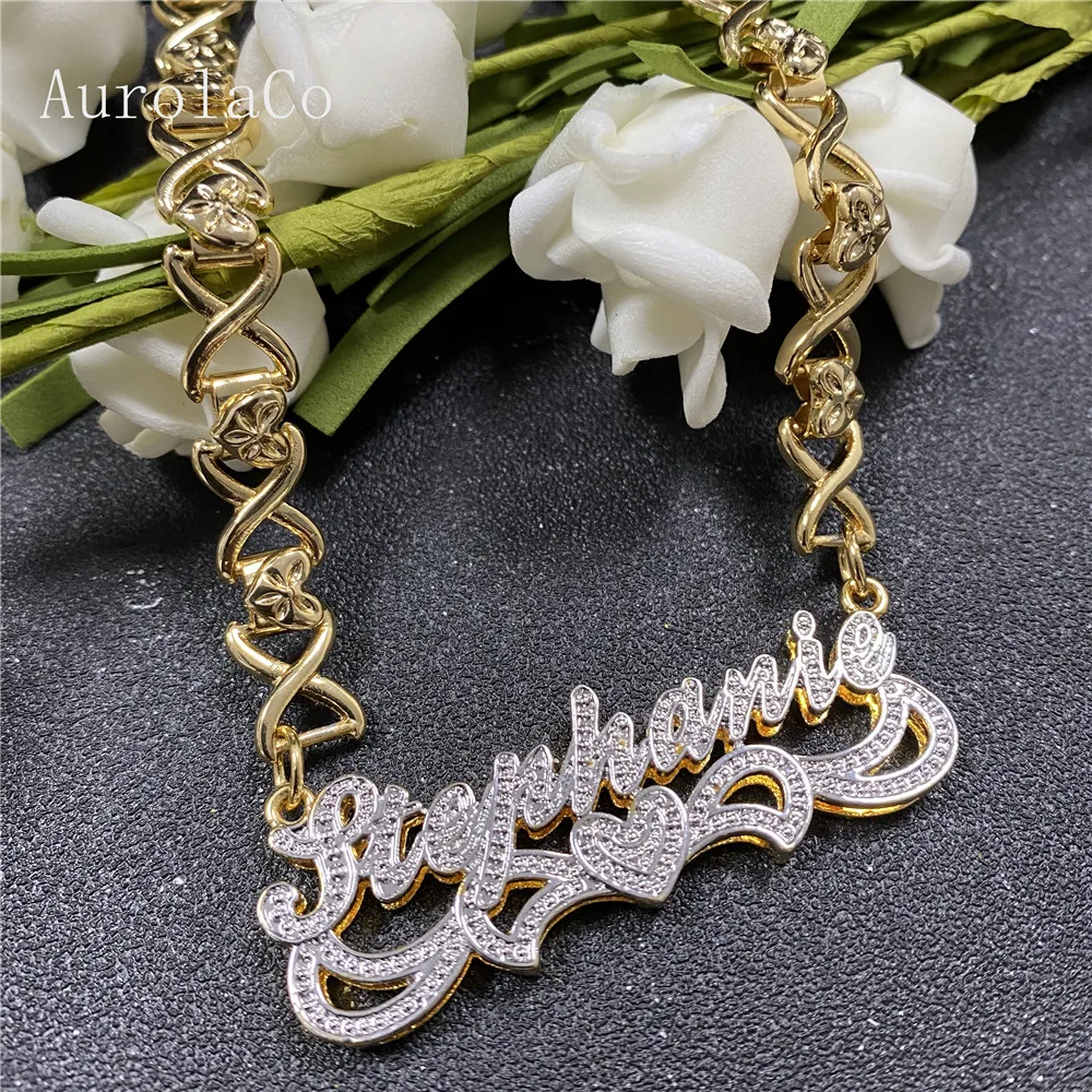 Набор ювелирных изделий AurolaCo с именем на заказ, ожерелье с двой...