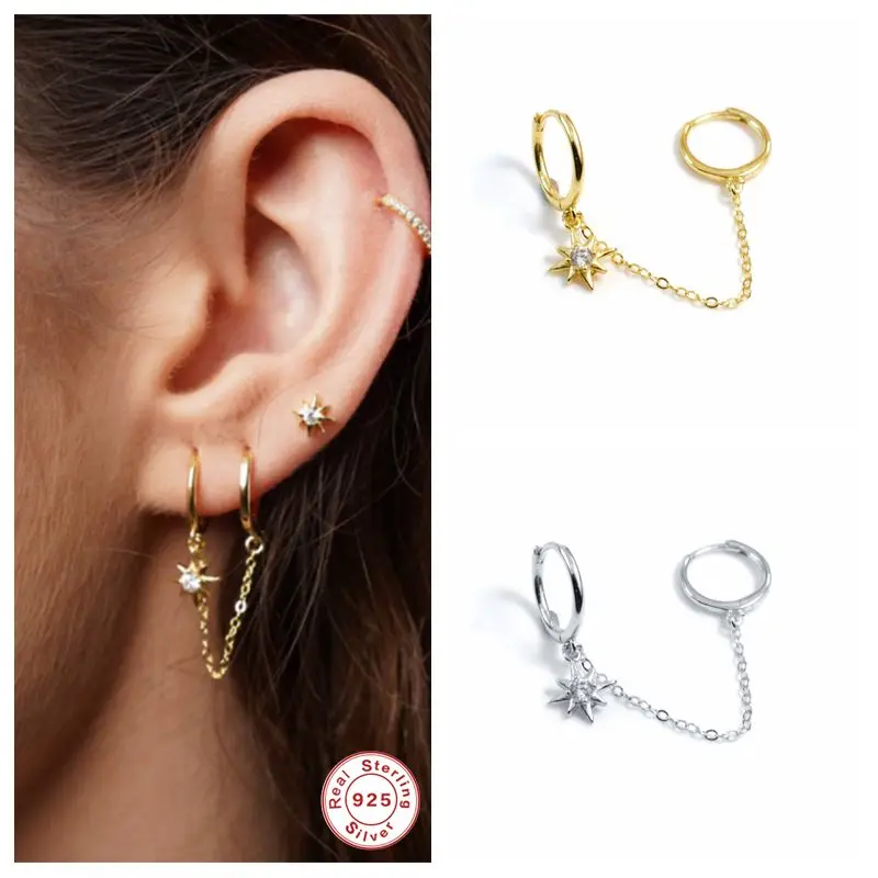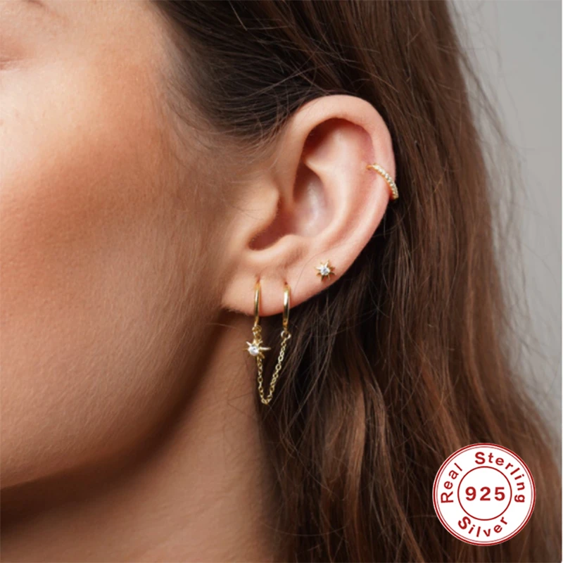 925 стерлингового серебра в виде восьмиугольника с Форма Huggie серьги-кольца для женщин, женская девушка сверкающие серьги из циркона, украшения аксессуары подарок