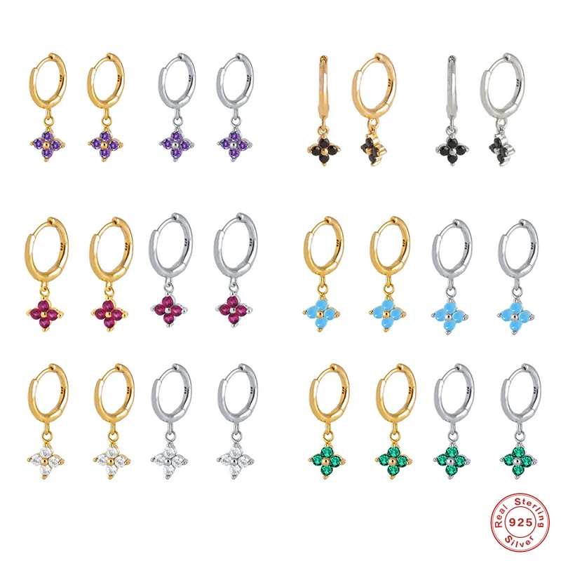 Aide 925 стерлингового серебра серьги в виде колец, с красочные циркониевое цветочное кулон для женщин подарок для девочек Петля серьги с кисточкой orecchini
